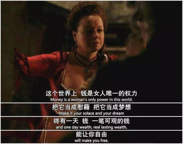 “在这个世界上,钱是女人唯一的权力。把它当成慰藉,把它当成梦想。终有一天,钱,一笔可观的钱,能让你自由。”