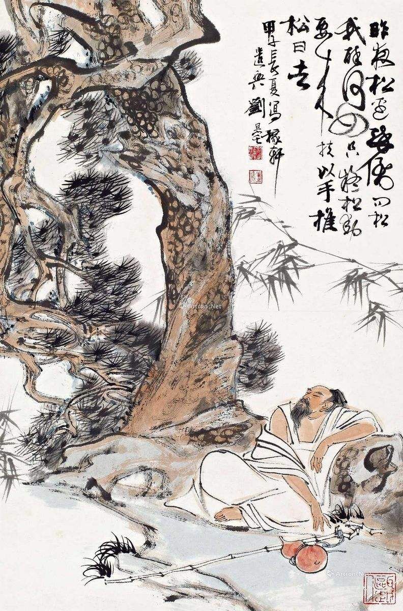 昨夜松边醉倒,问松我醉何如。只疑松动要来扶。以手推松曰去。