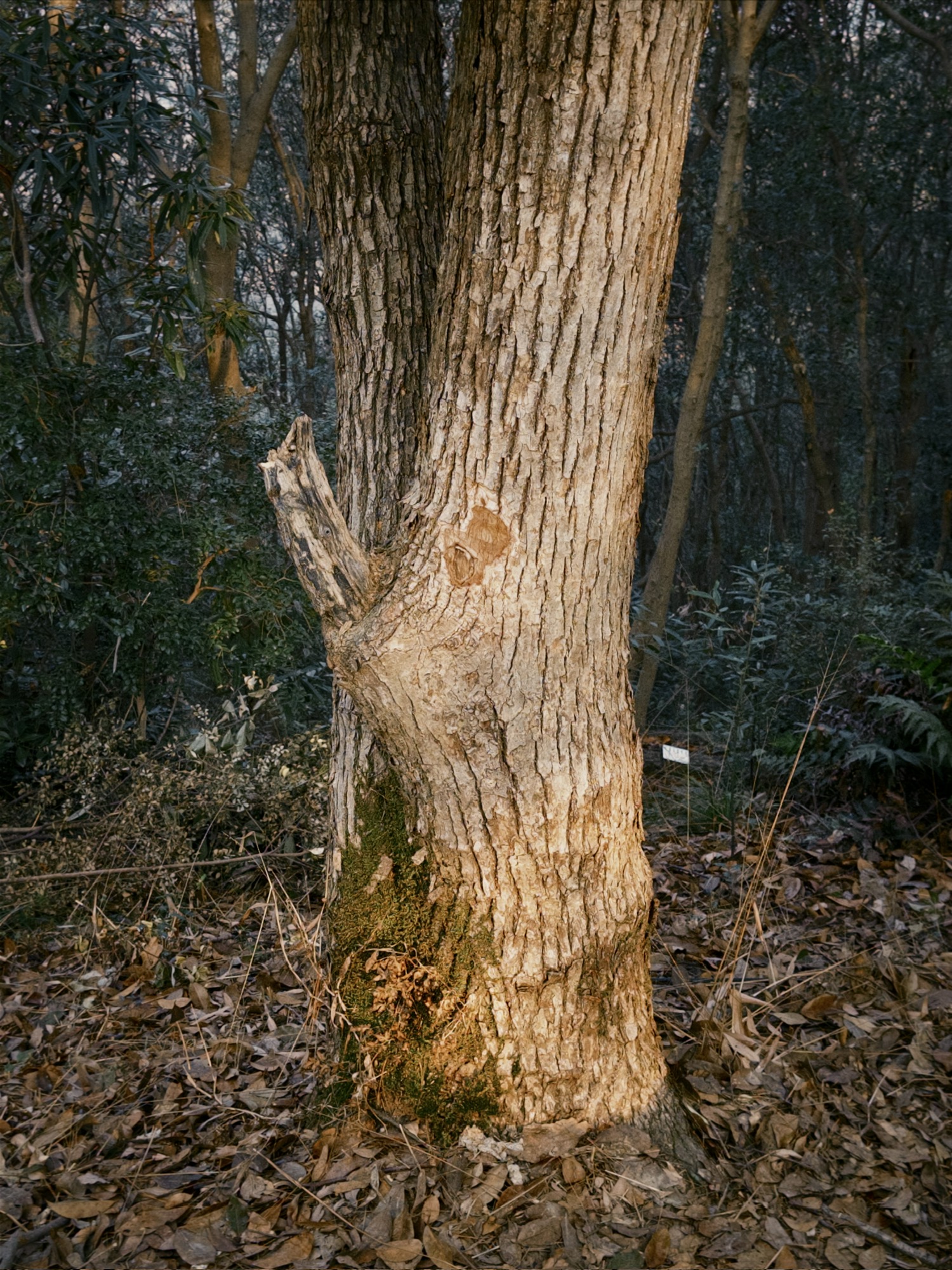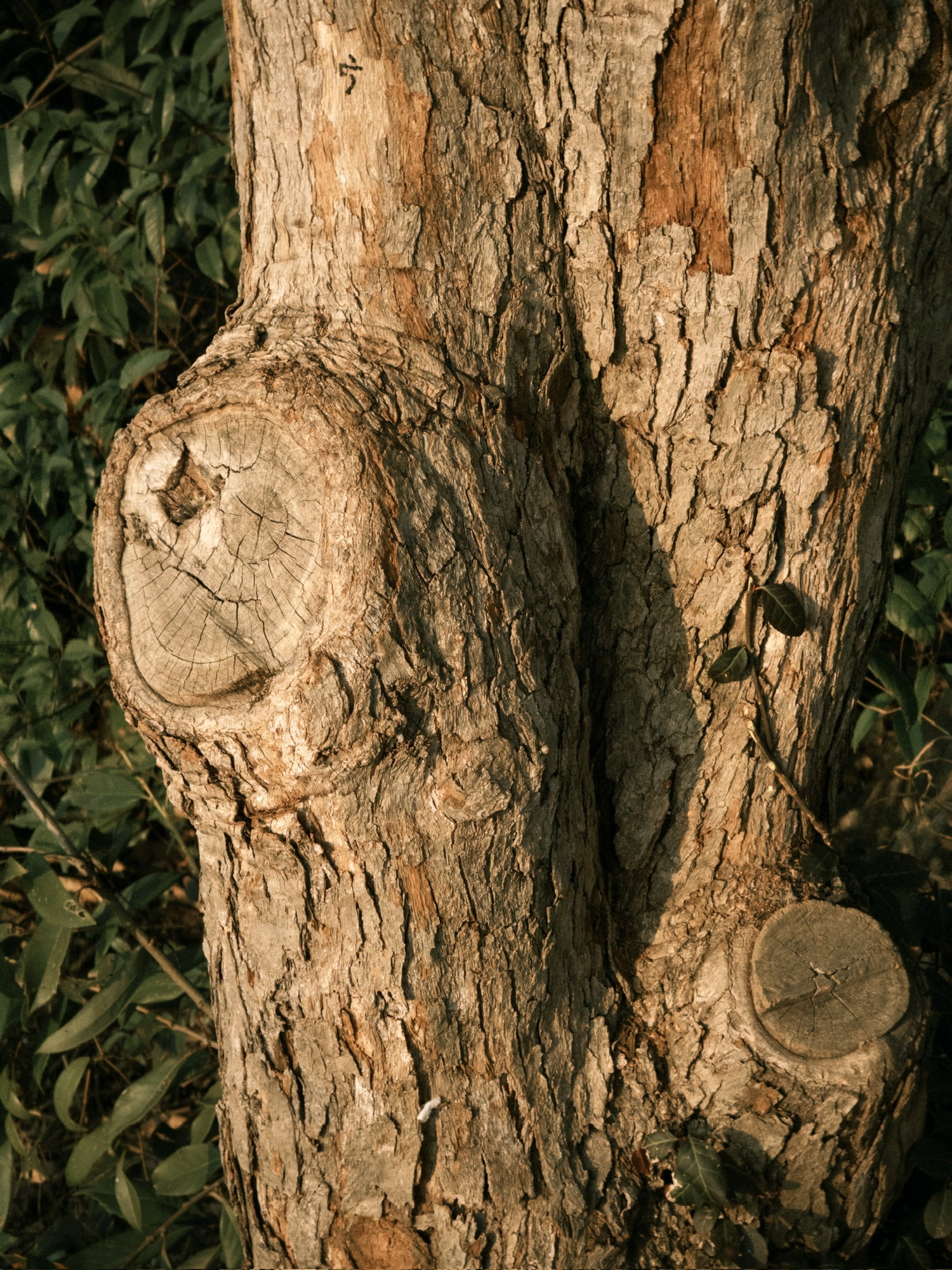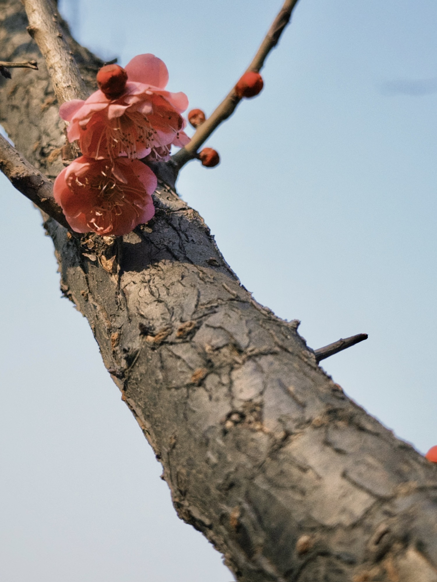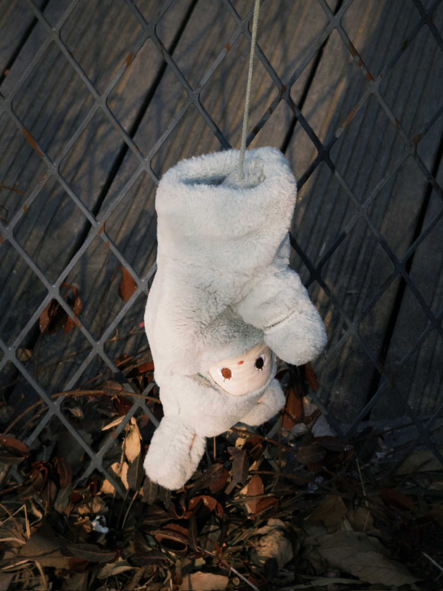 树干粗粝,花瓣细腻,玩偶被遗弃。