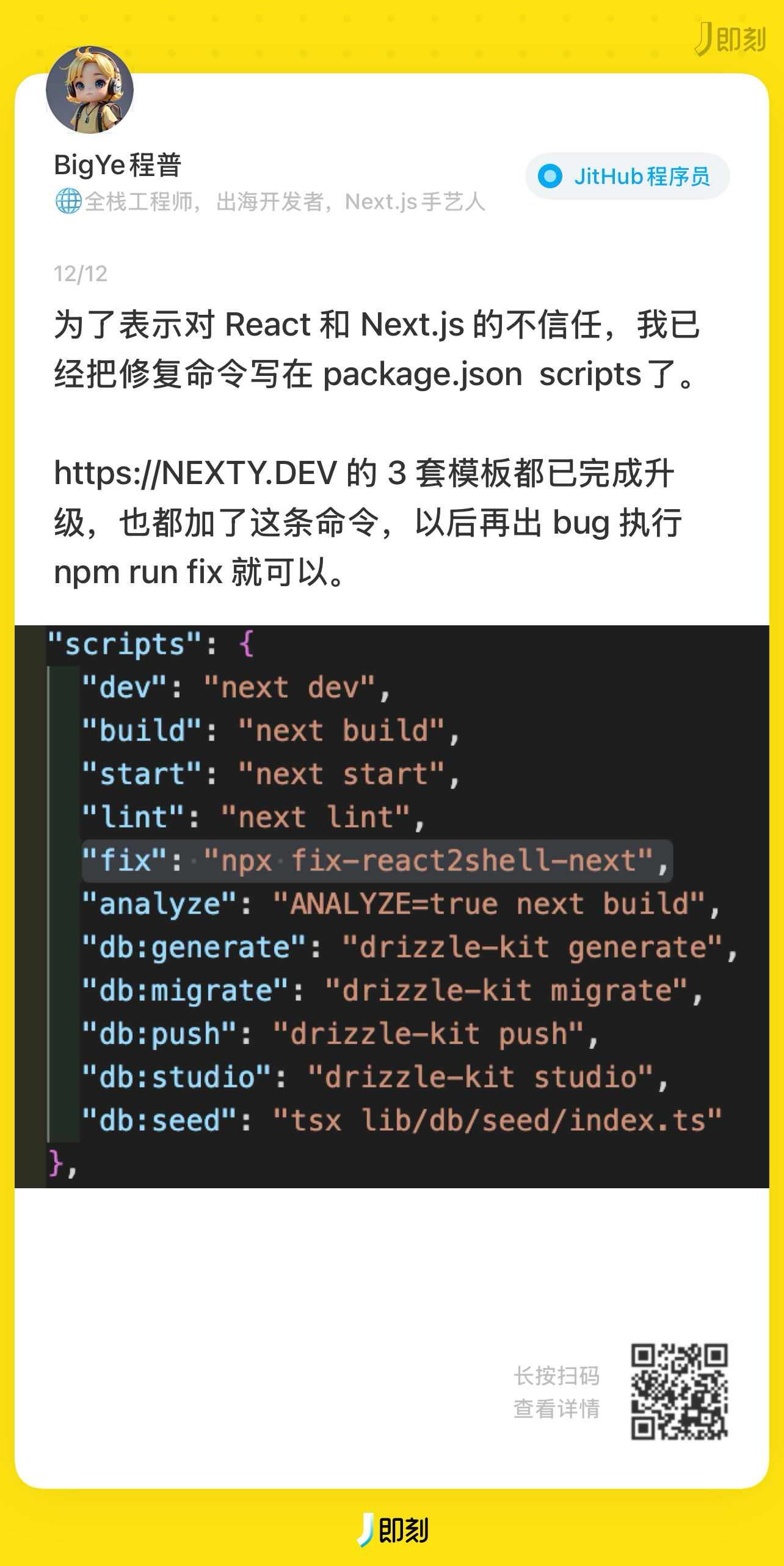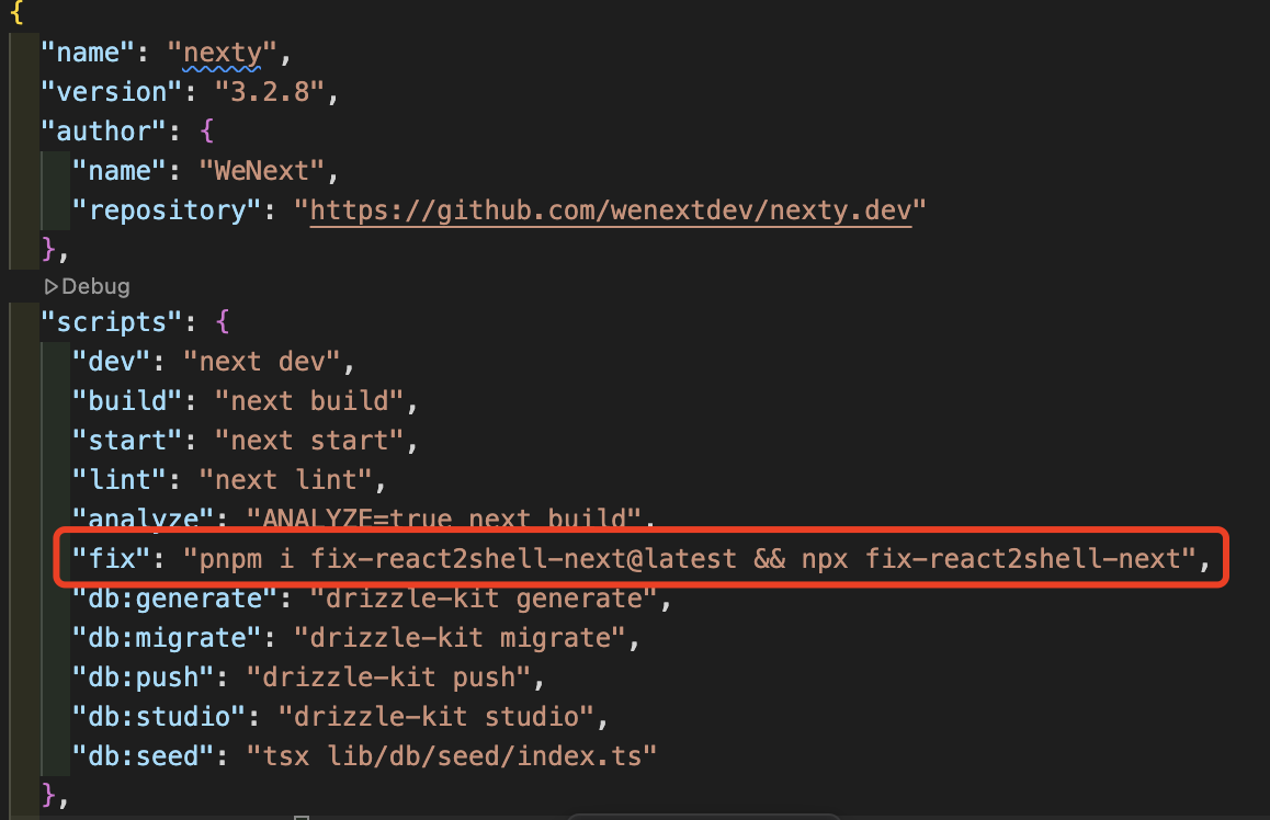 为了表示对 React 和 Next.js 的不信任,我已经把修复命令写在 package.json scripts了。