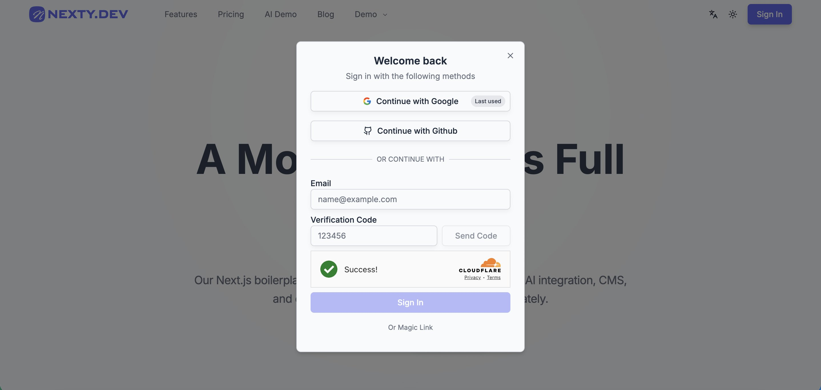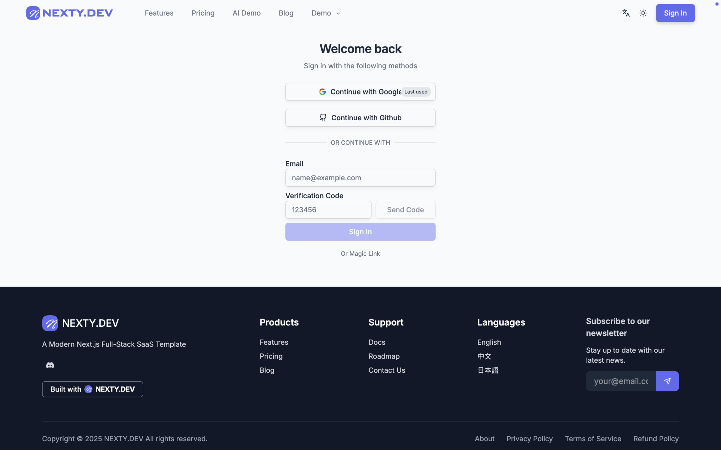 - 支持 3 种登录方式:社交登录(内置Google和GitHub)、邮箱验证码、邮箱 Magic Link