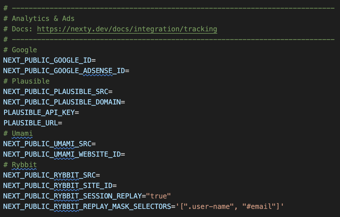 现在模板支持了 GA、Plausible、Umami 和 Rybbit,基本上把主流的统计工具都集成好了,大家可以选择自己顺手的工具了,只需要填写环境变量即生效,无需修改代码。