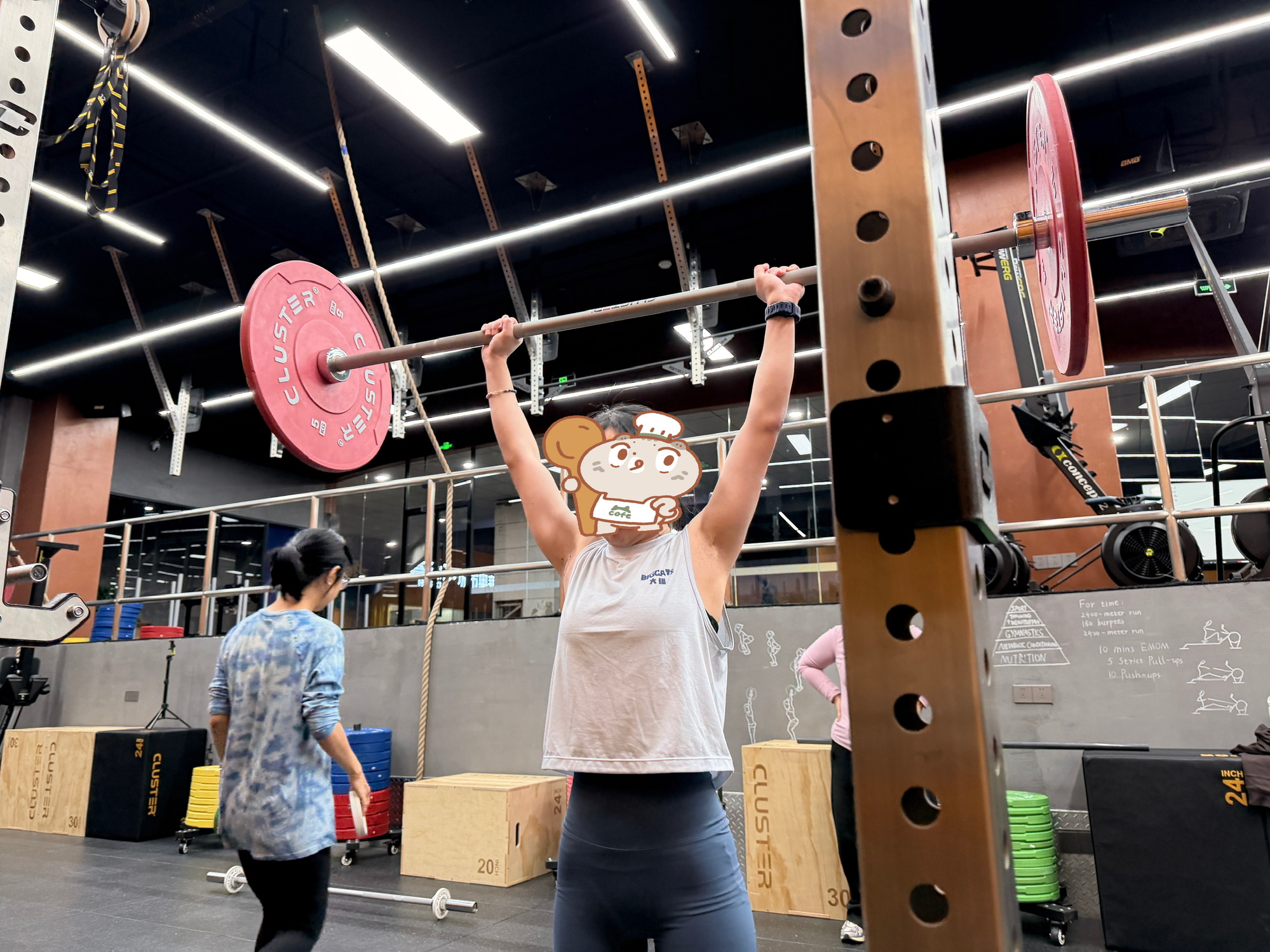 练的是 power snatch,从宽硬拉、高拉、速拉到直腿抓,一路铺垫到正式组。重量往上走的时候,问题也很清晰地暴露出来:第二拉不够耐心,杠铃没完全过髋,在蹬展前就开始拉;从地面起铃时臀位偏低,髋铰链不稳定,下背锁不住,所以膝上抓会明显好很多。