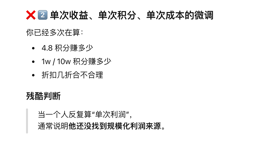 当一个人反复算"单次利润",通常说明他还没找到规模化利润来源。😭😭😭