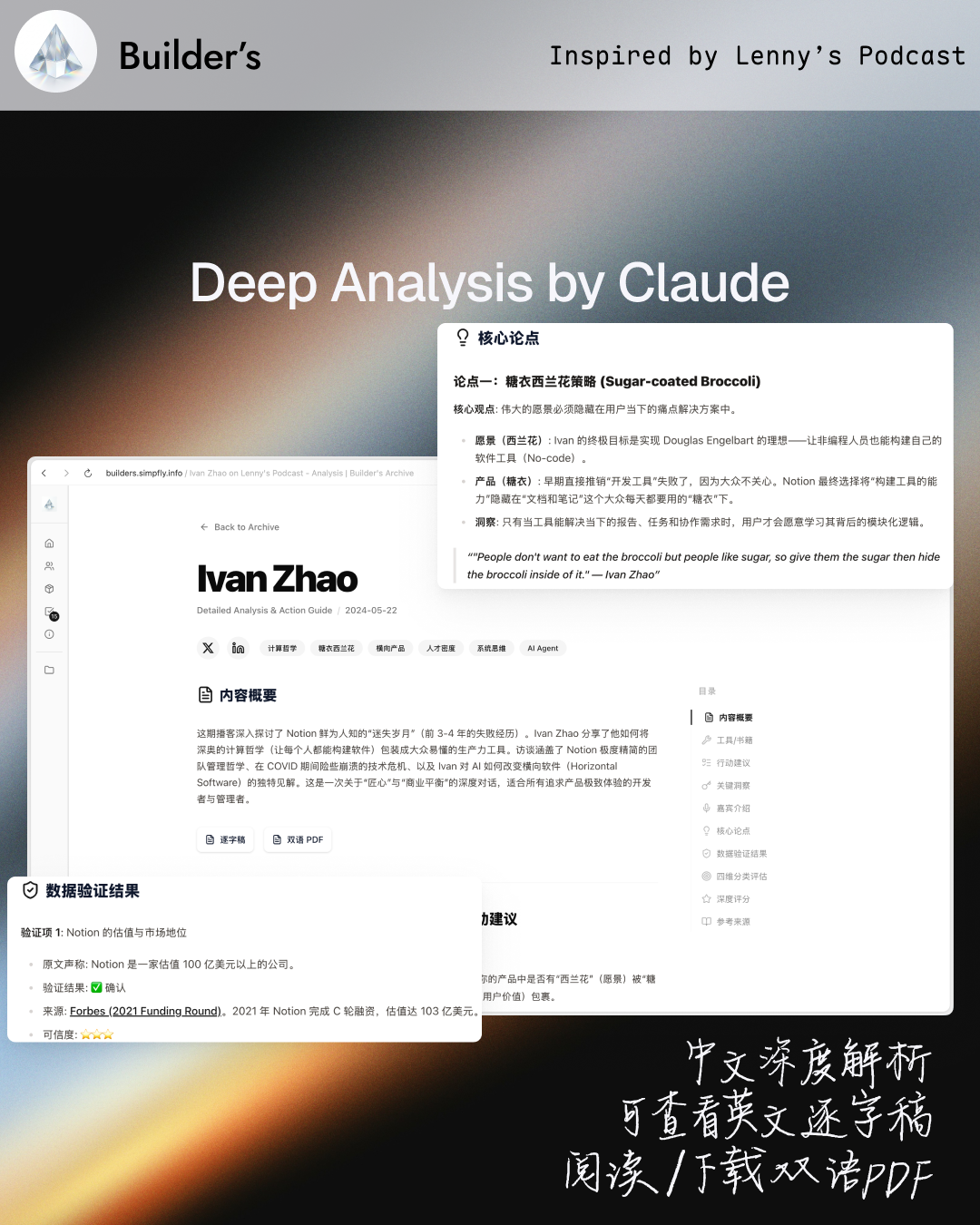 我花 3 天时间把 Lenny 公开的播客文稿做成了可交互的网站 Builder's