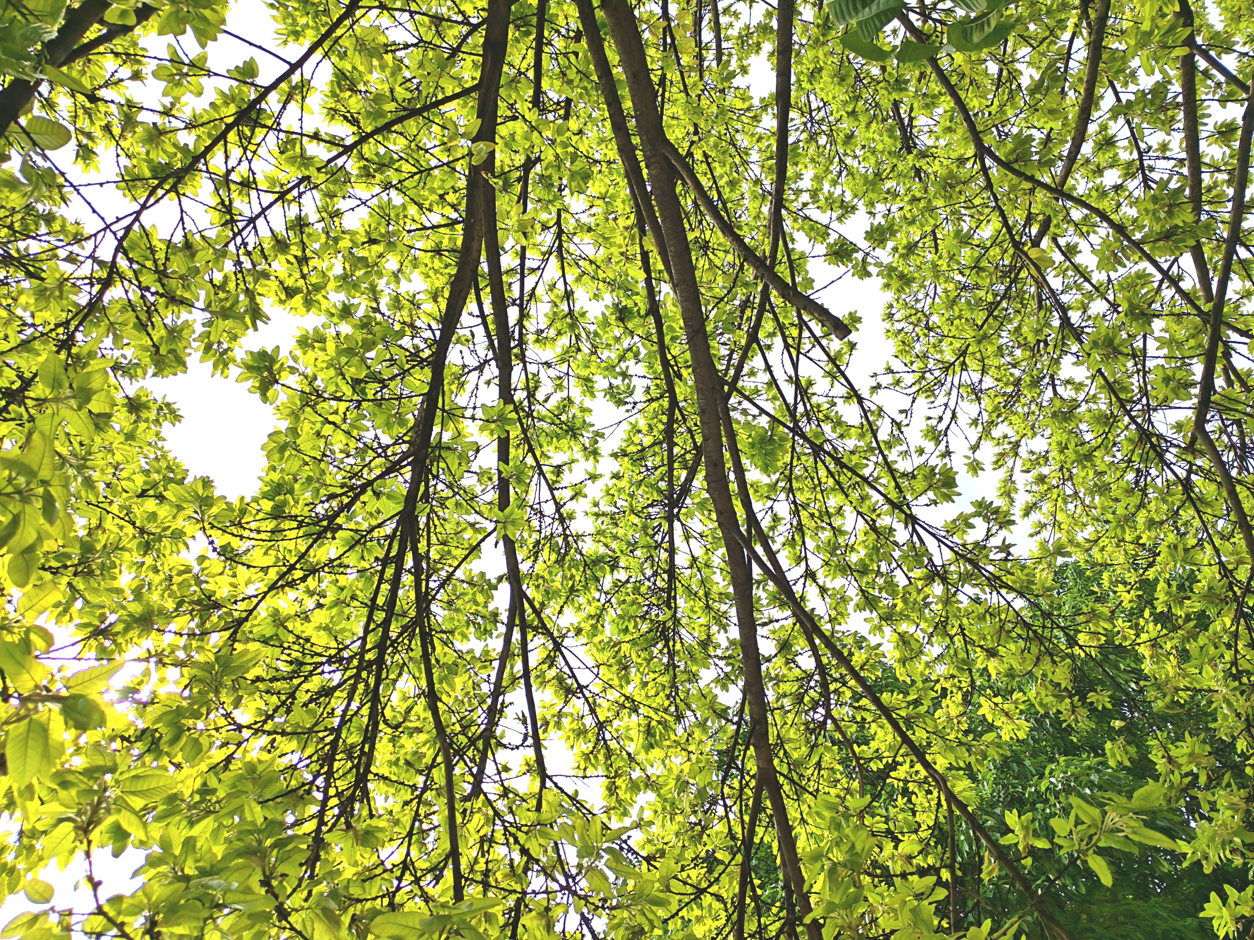 同一时间同一个广场上同一种树的“春夏秋冬”。