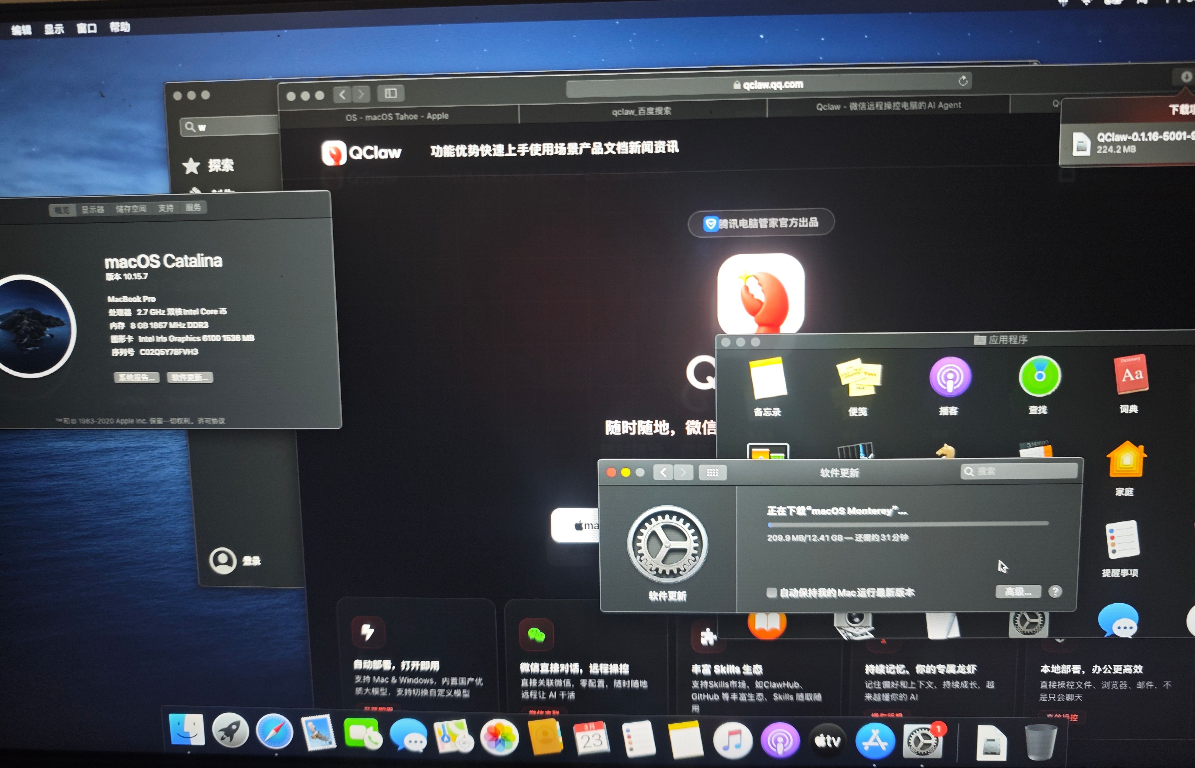 直营店维修,直接重装系统,但是系统版本还是太低了,微信需要 12.0,qclaw 需要 11 以上,重装的系统才 10,继续重装系统🌚