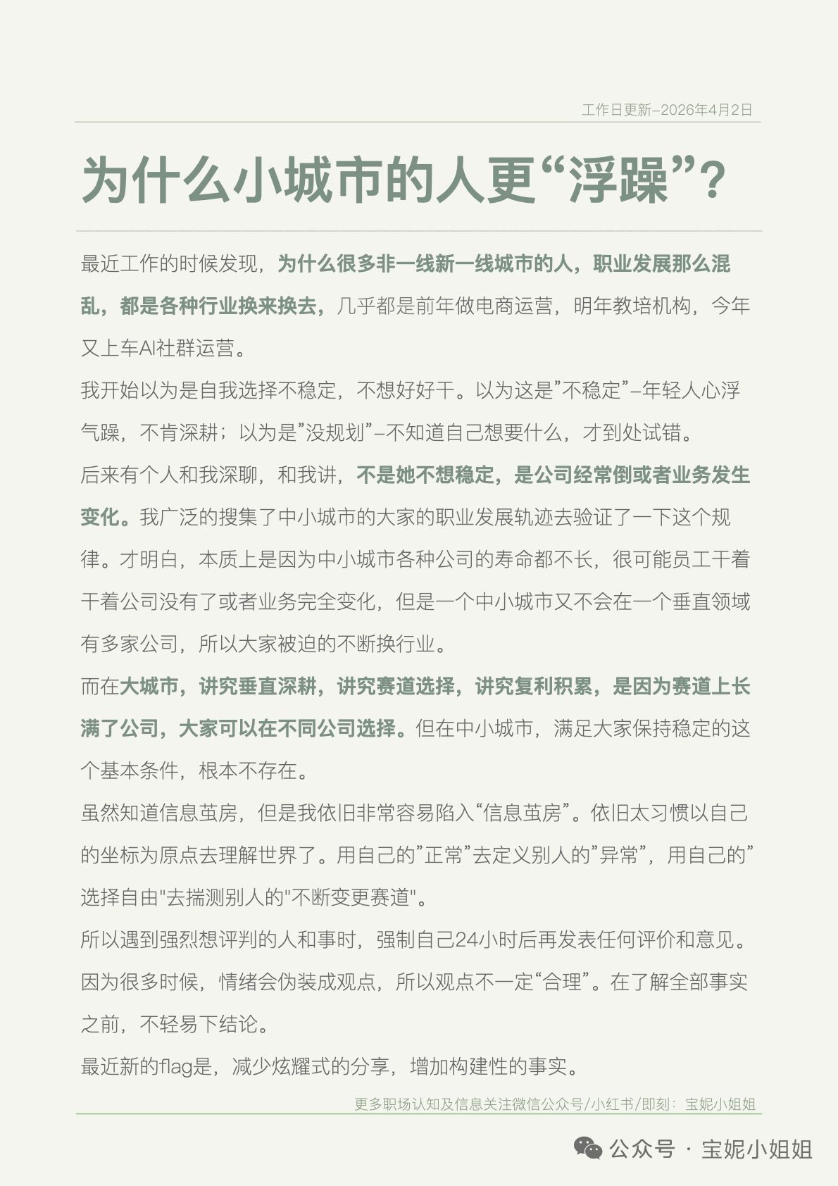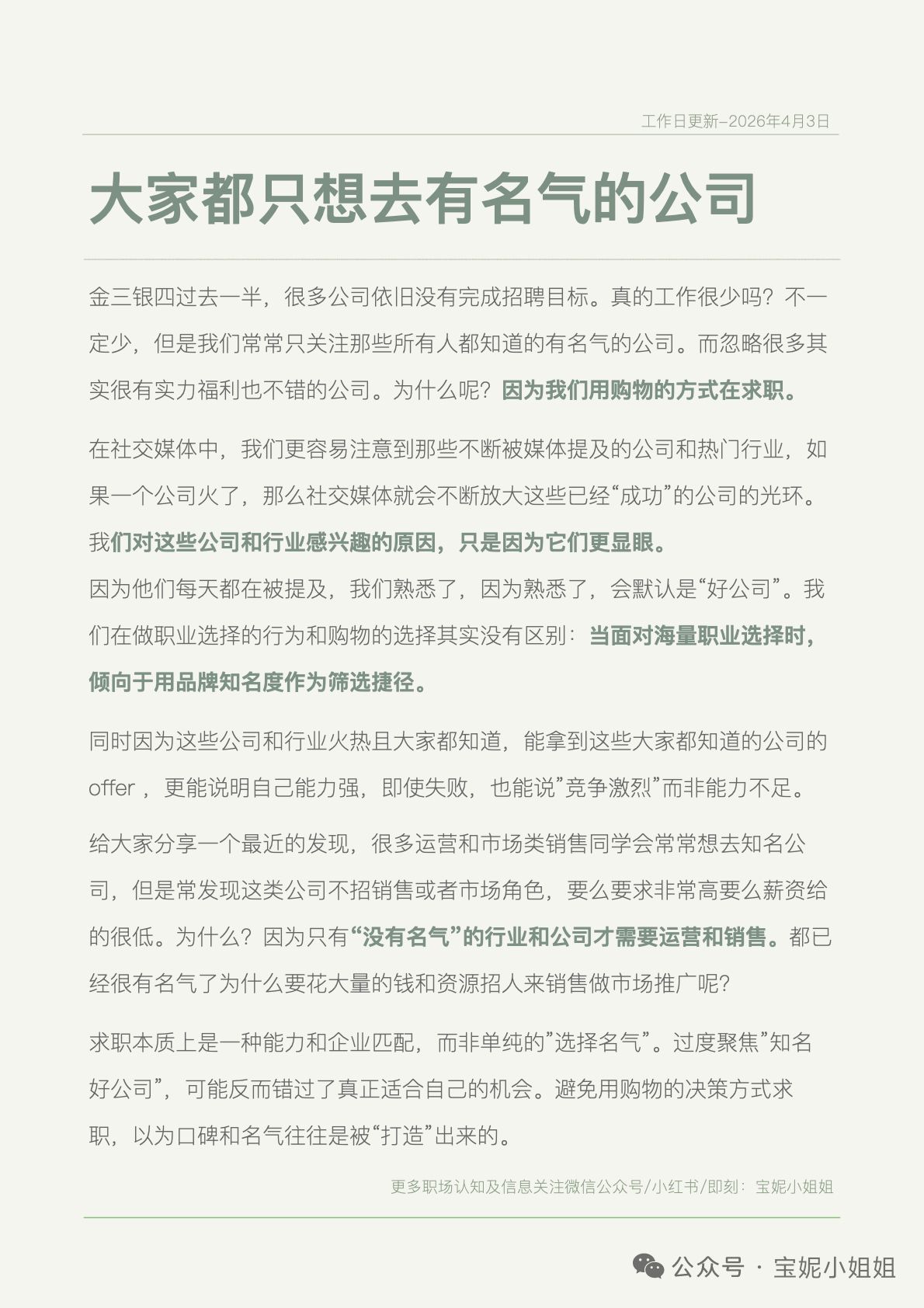 个人媒体:公众号/豆瓣/小红书/知乎ID-宝妮小姐姐。原创文章80篇+,部分内容曾被猎聘、台湾版商业周刊采用。