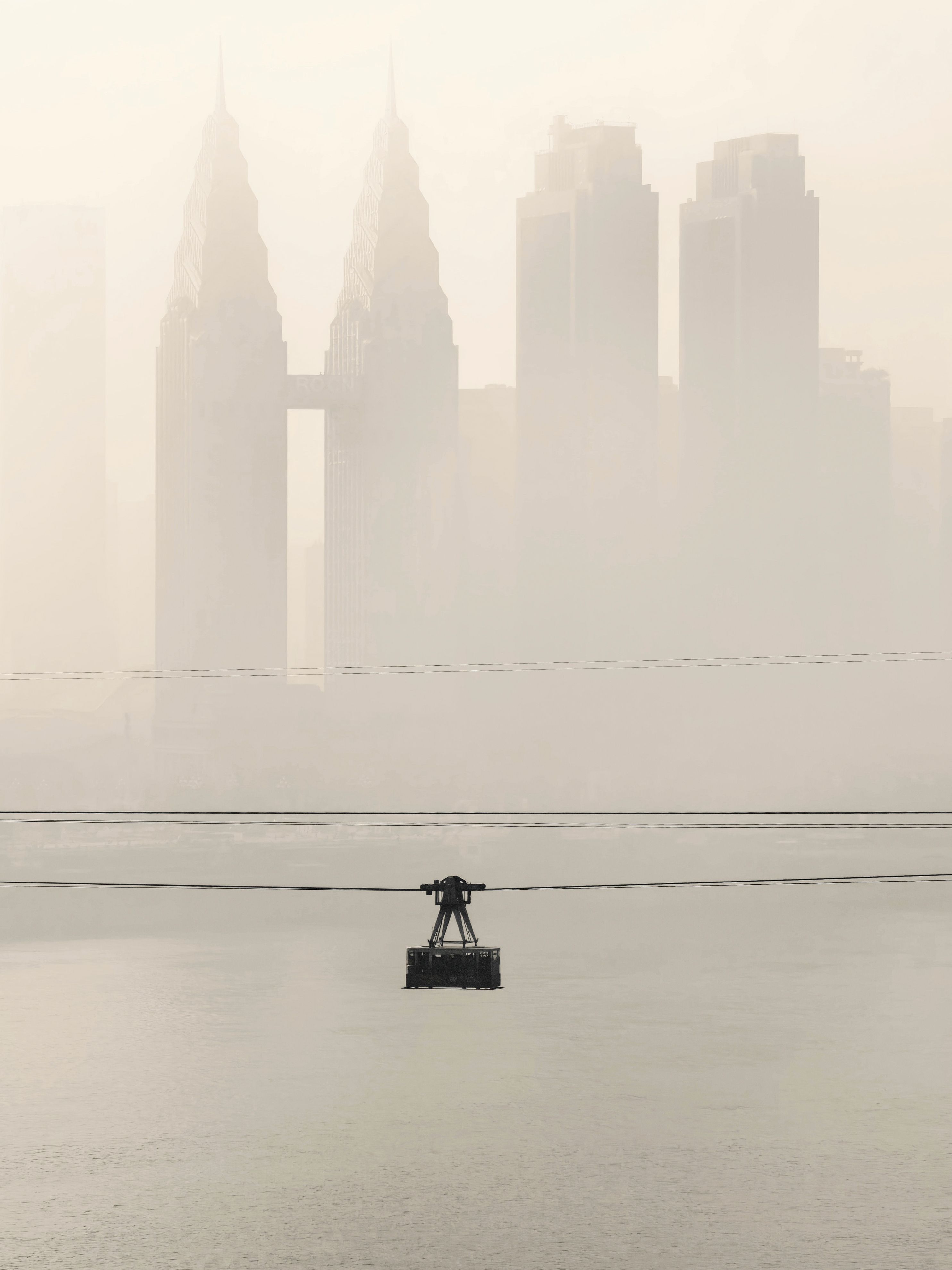 鸣沙山里游客项目热气球直升机,以及更远投入使用的光伏塔