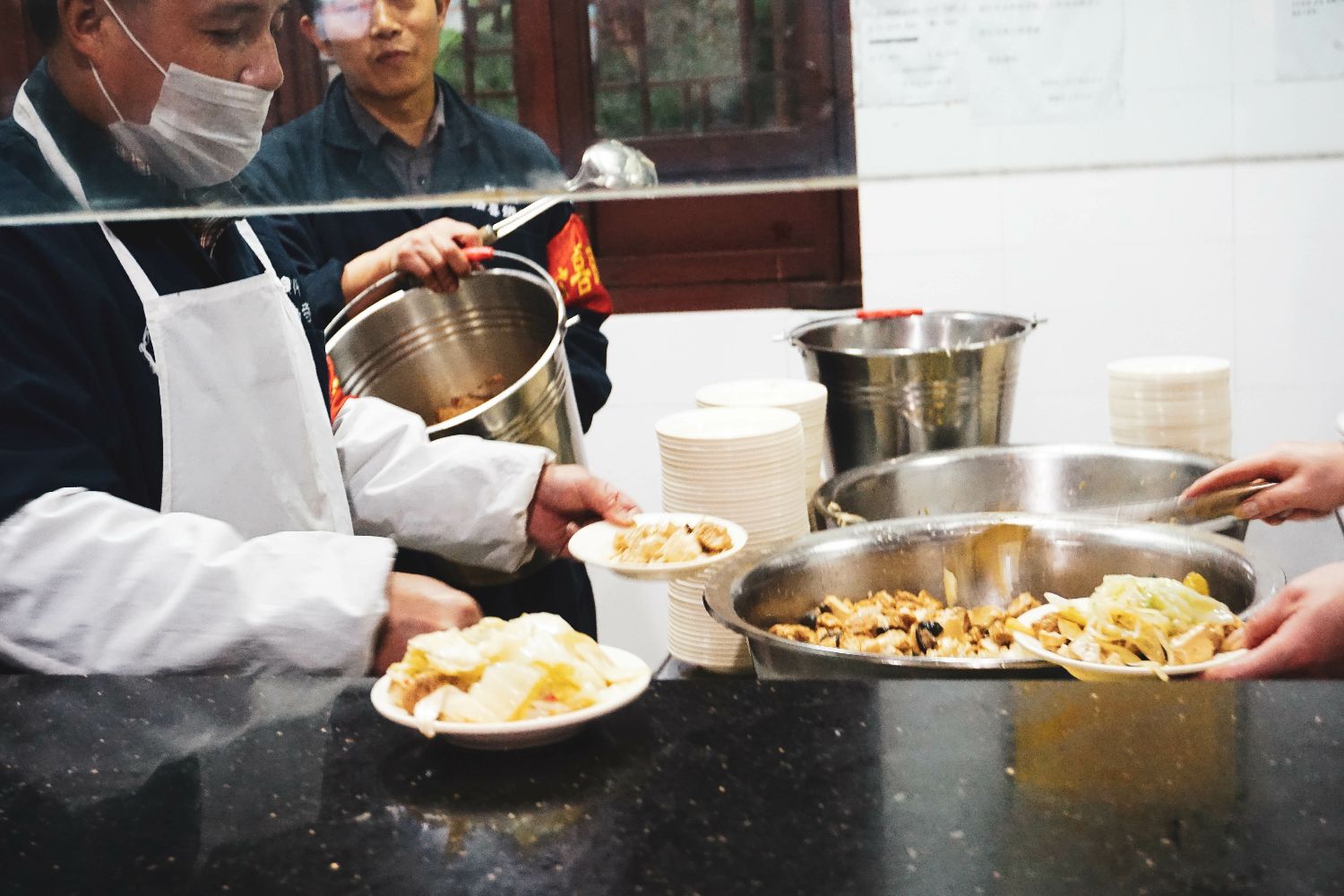 5.吃完饭可以把自己把盘子端到打菜窗口旁边的清洁室里哦,按量取菜,别浪费啦~