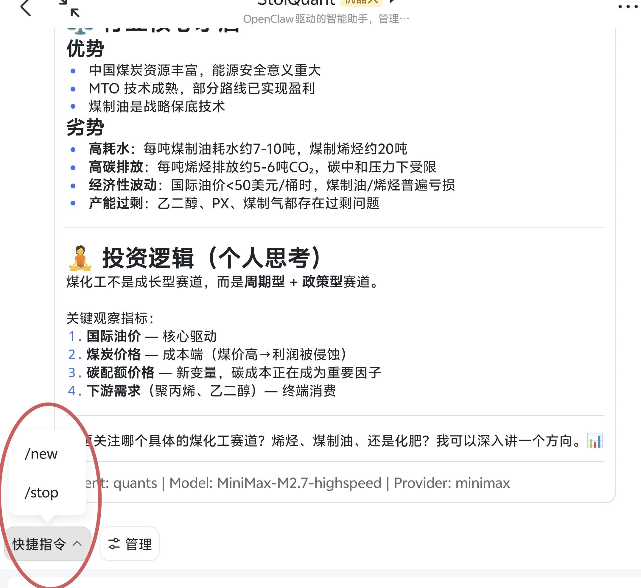 如果需要不同的 ChatBot 对接到 openclaw 不同的 Agent,(国内)目前似乎只有飞书可以做到,部署新的飞书机器人现在可以一键完成,而且对话框自带快捷指令,不过默认是对接云端 openclaw 如果需要和自己部署的 AGENT 对接还需要解除绑定重新配置一下。