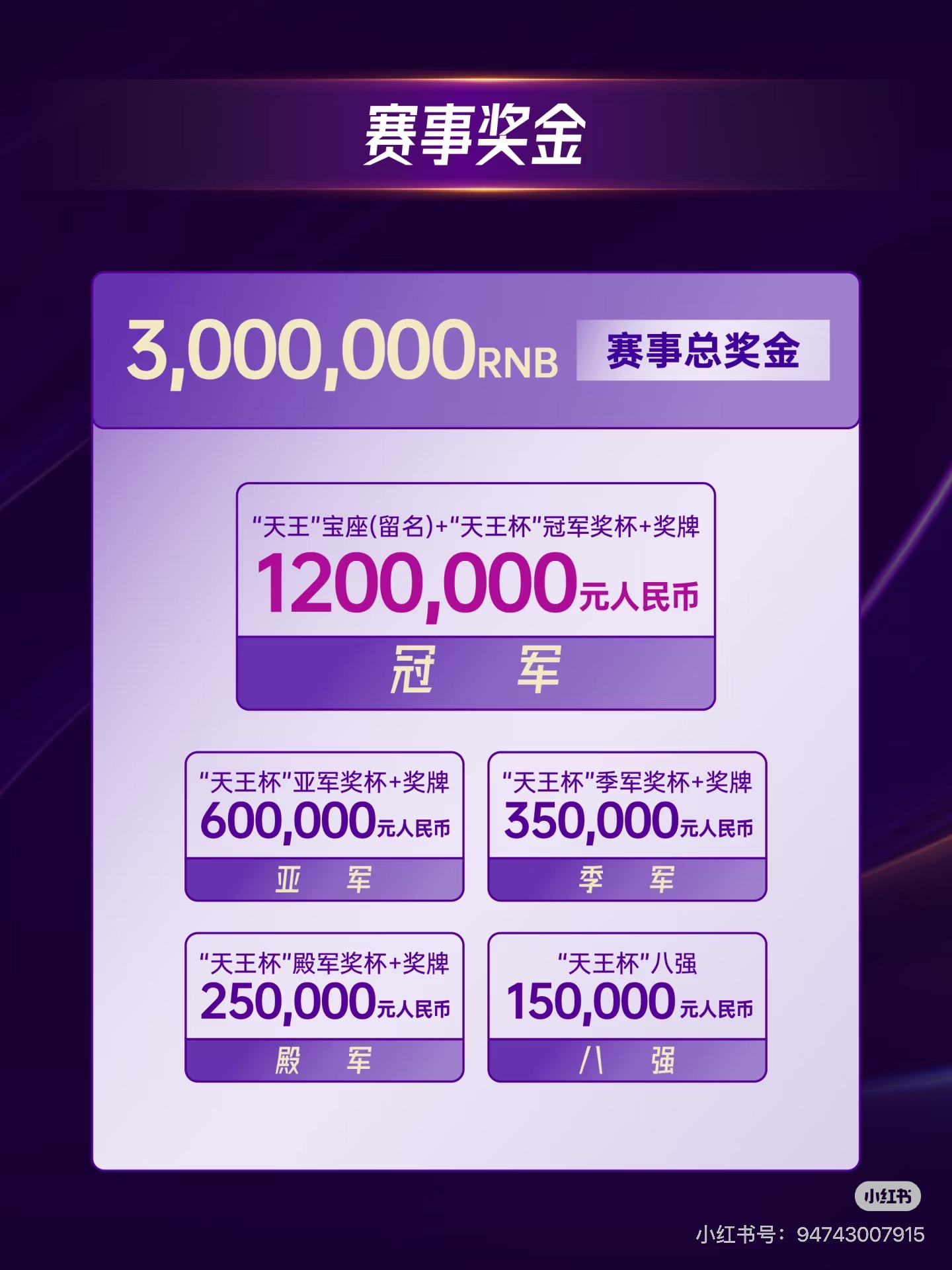 天王杯冠军 120 万人民币,这个奖金真不低了😯