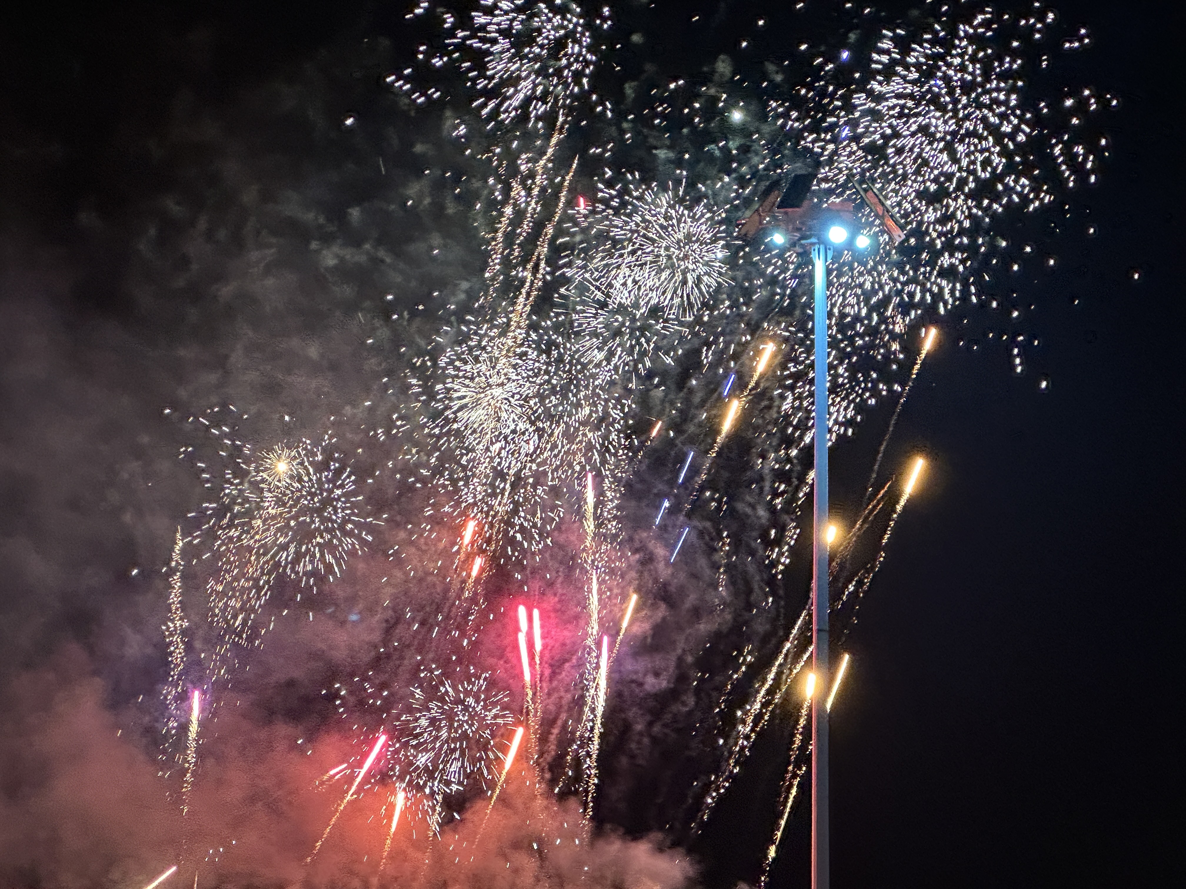 今晚和妈妈一起逛公园,看烟火