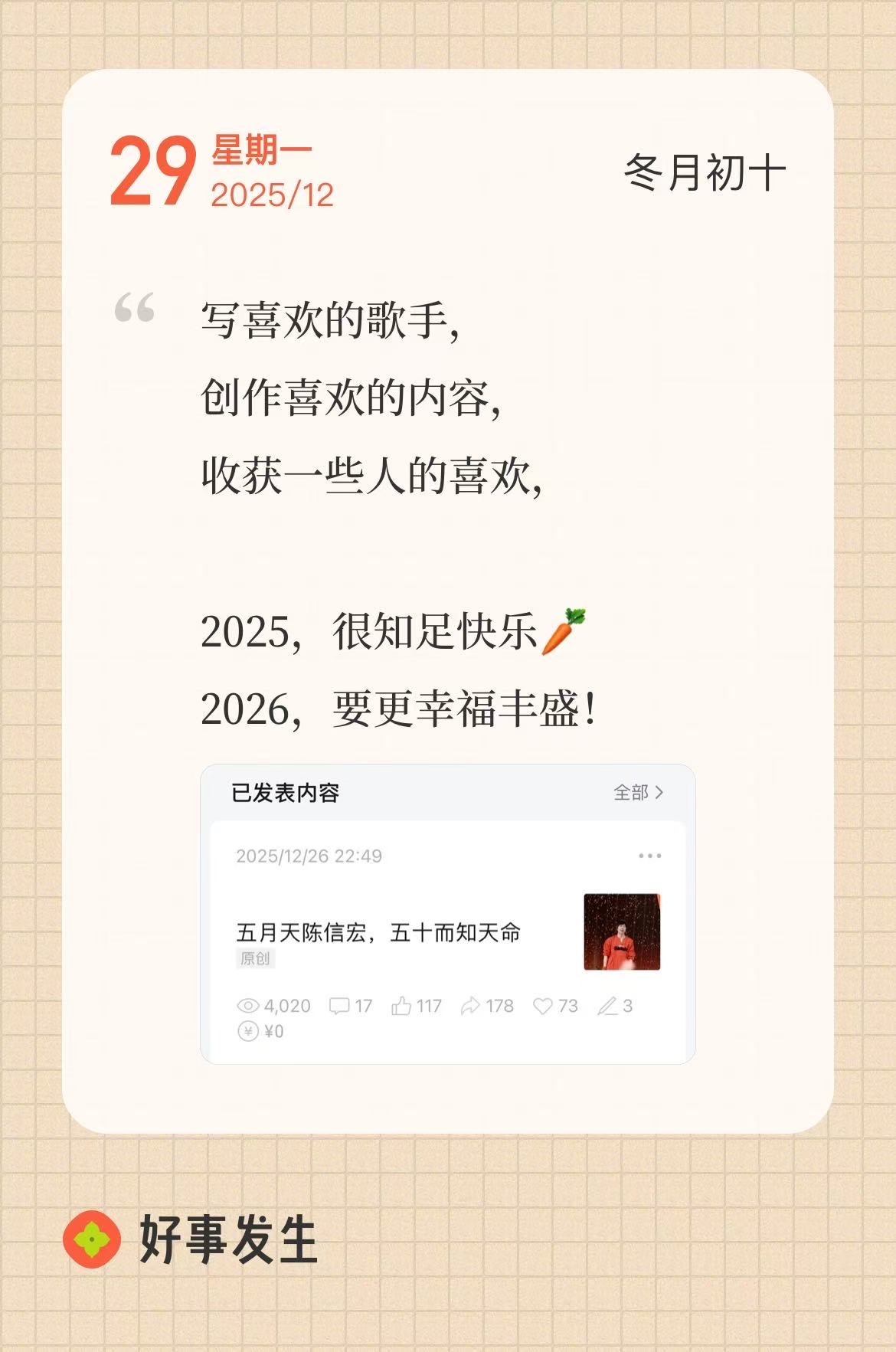 每一个完成被记下的愿望,都是挂有名为勇气的勋章,一片一片铺设着幸福的蓝图,将闪光的日子存送给未来,是你写得最好的明信片。