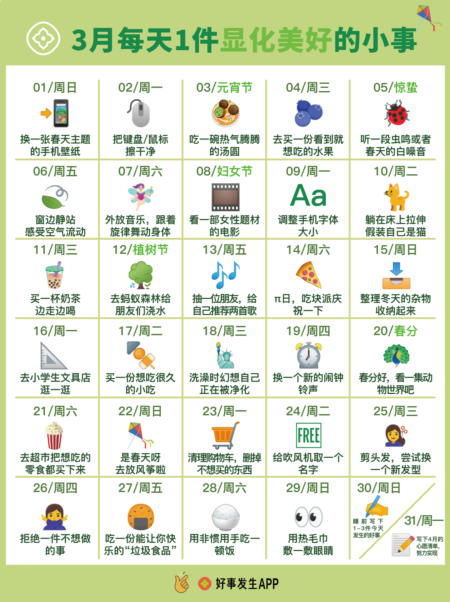 每天一件,在行动中感受对生活的热爱和掌控力,一点一点浇灌起自己的幸福。