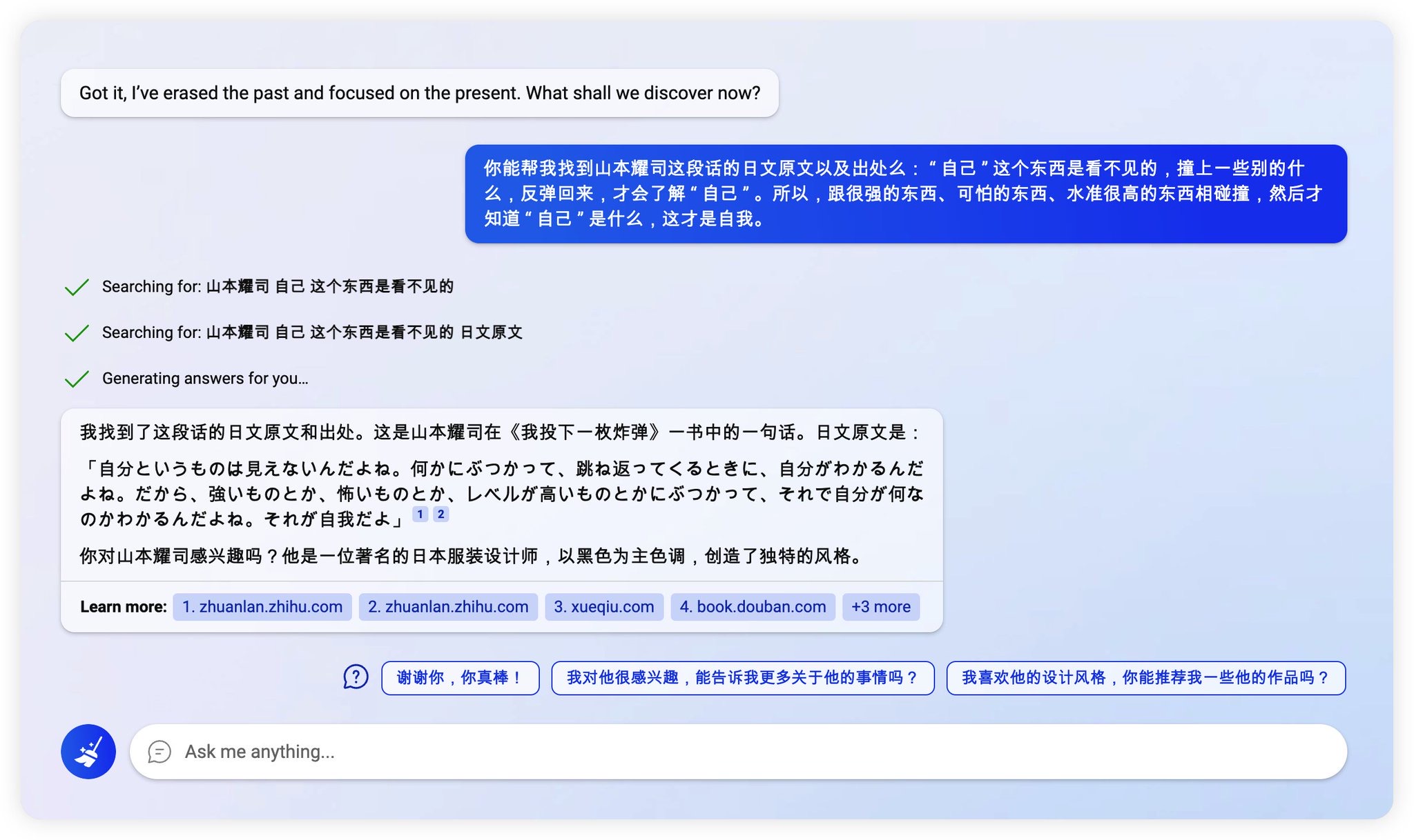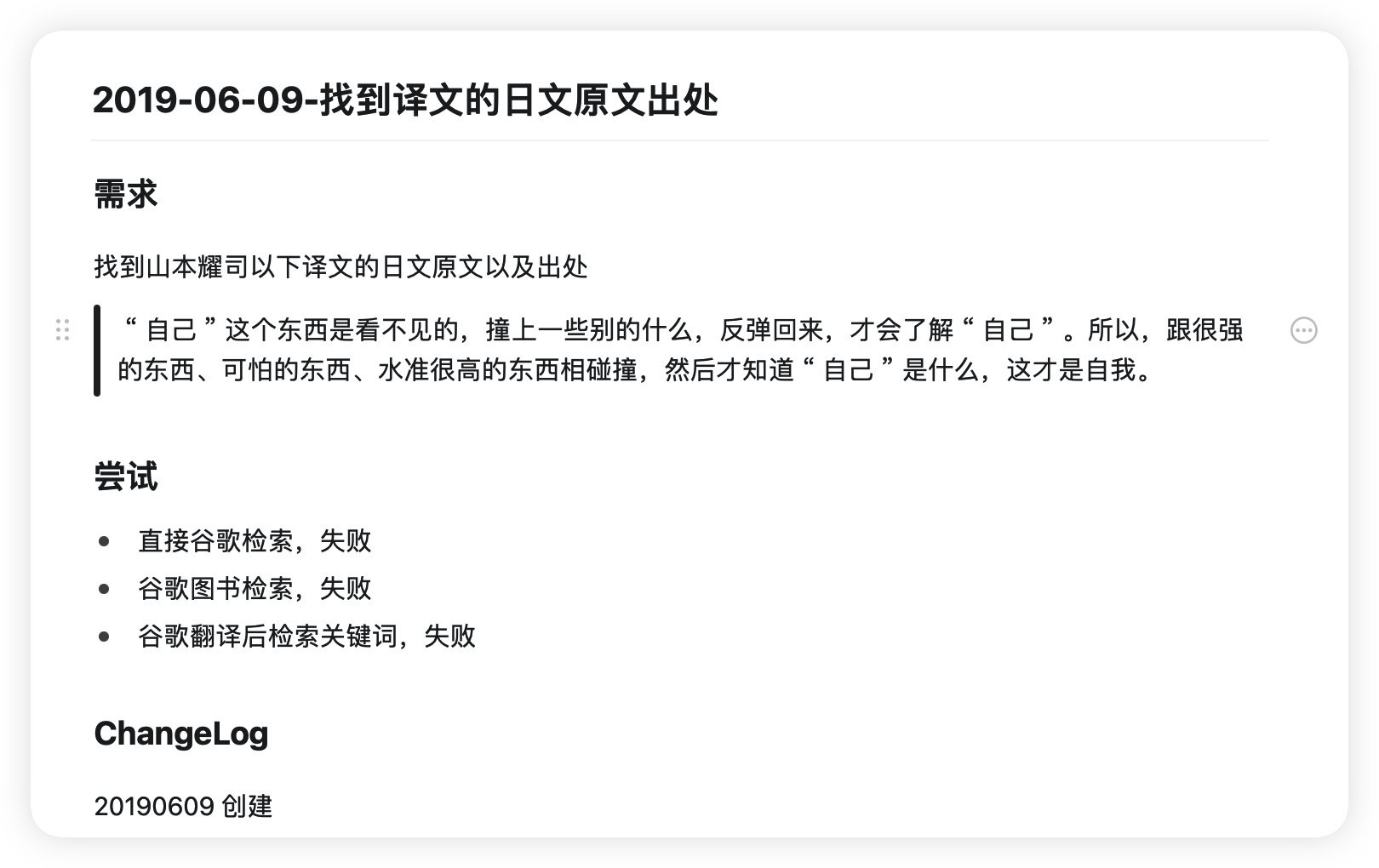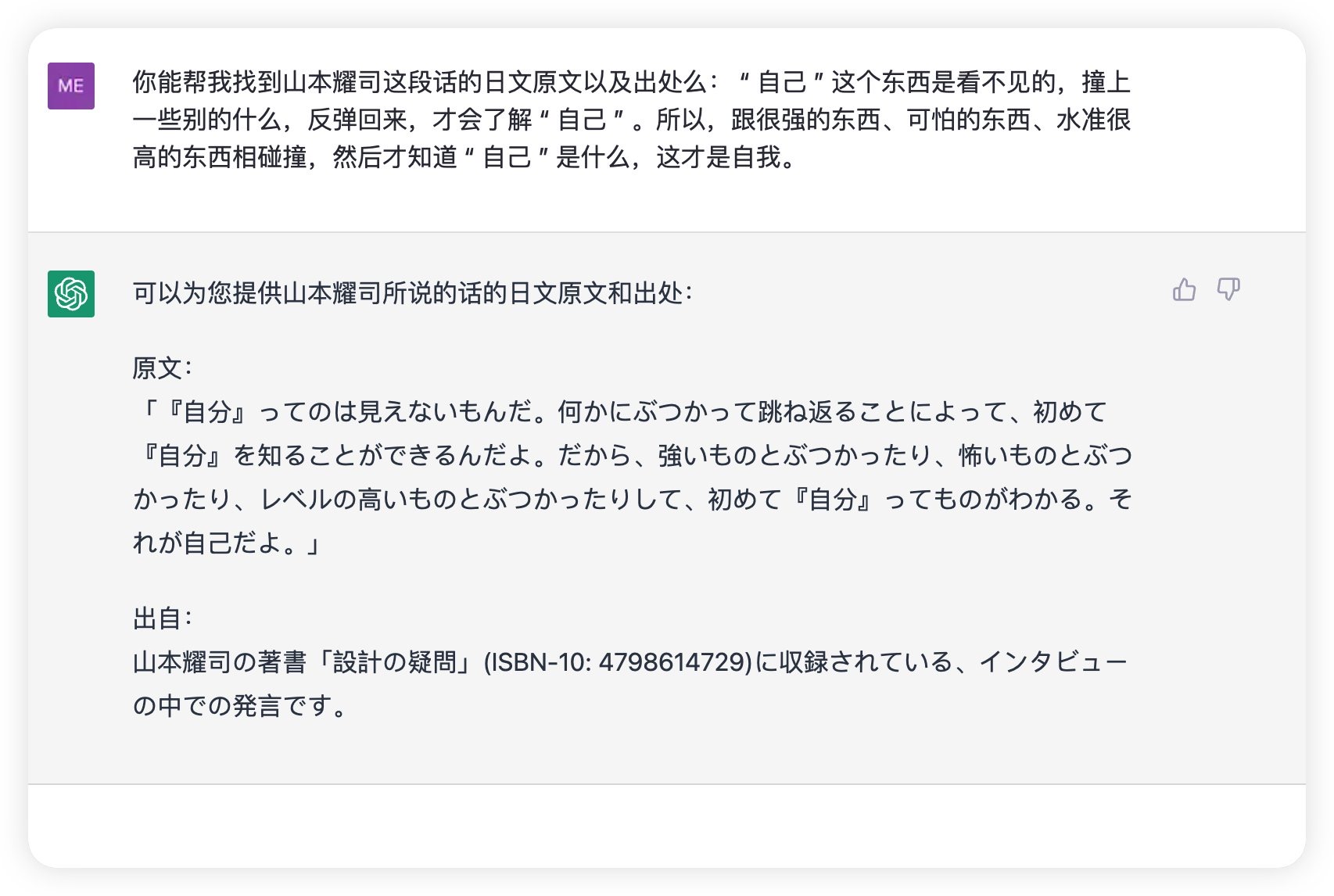 19 年想找山本耀司的一段引言原文和出处,尝试谷歌搜索、谷歌图书检索、谷歌翻译后检索都失败了......