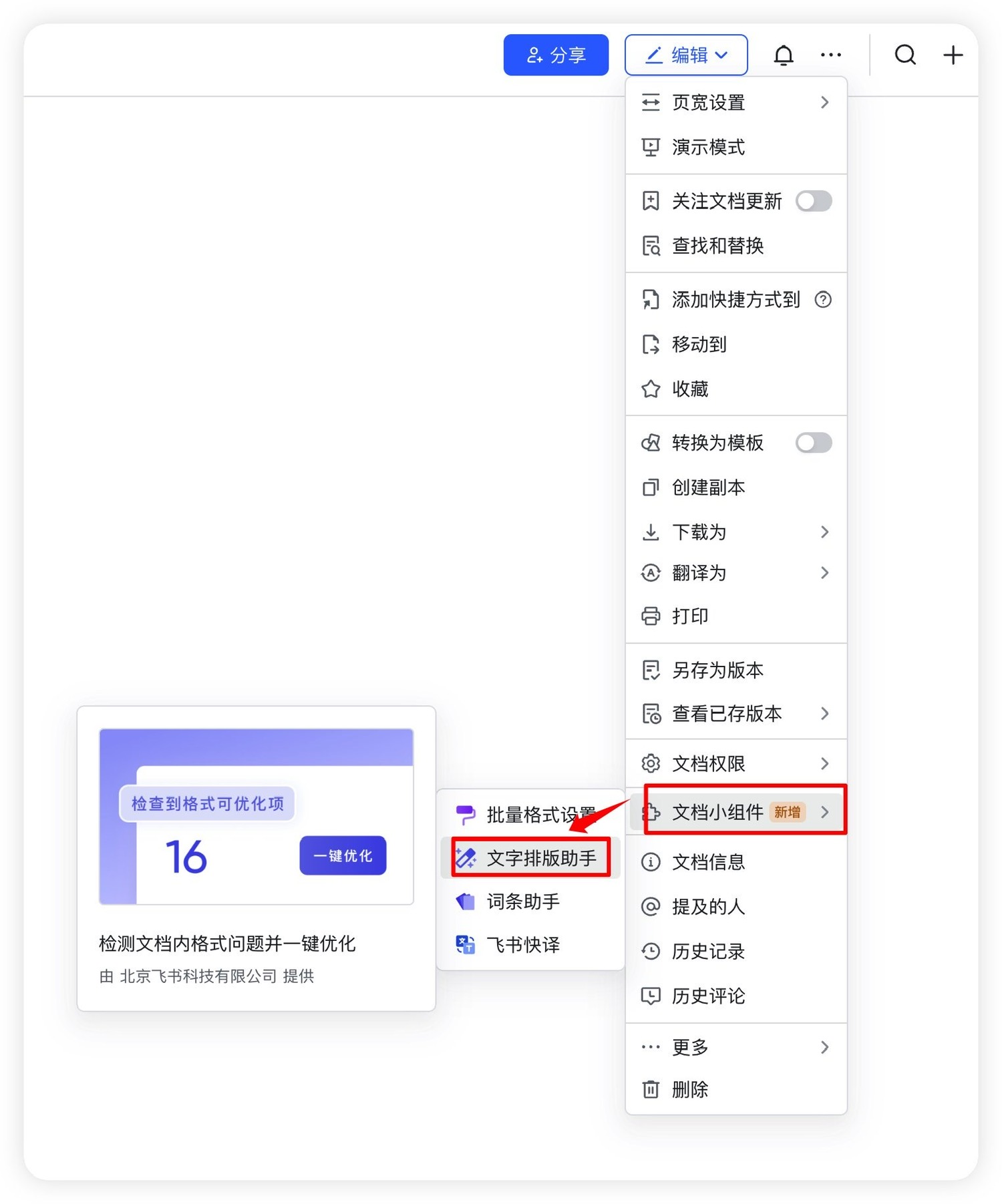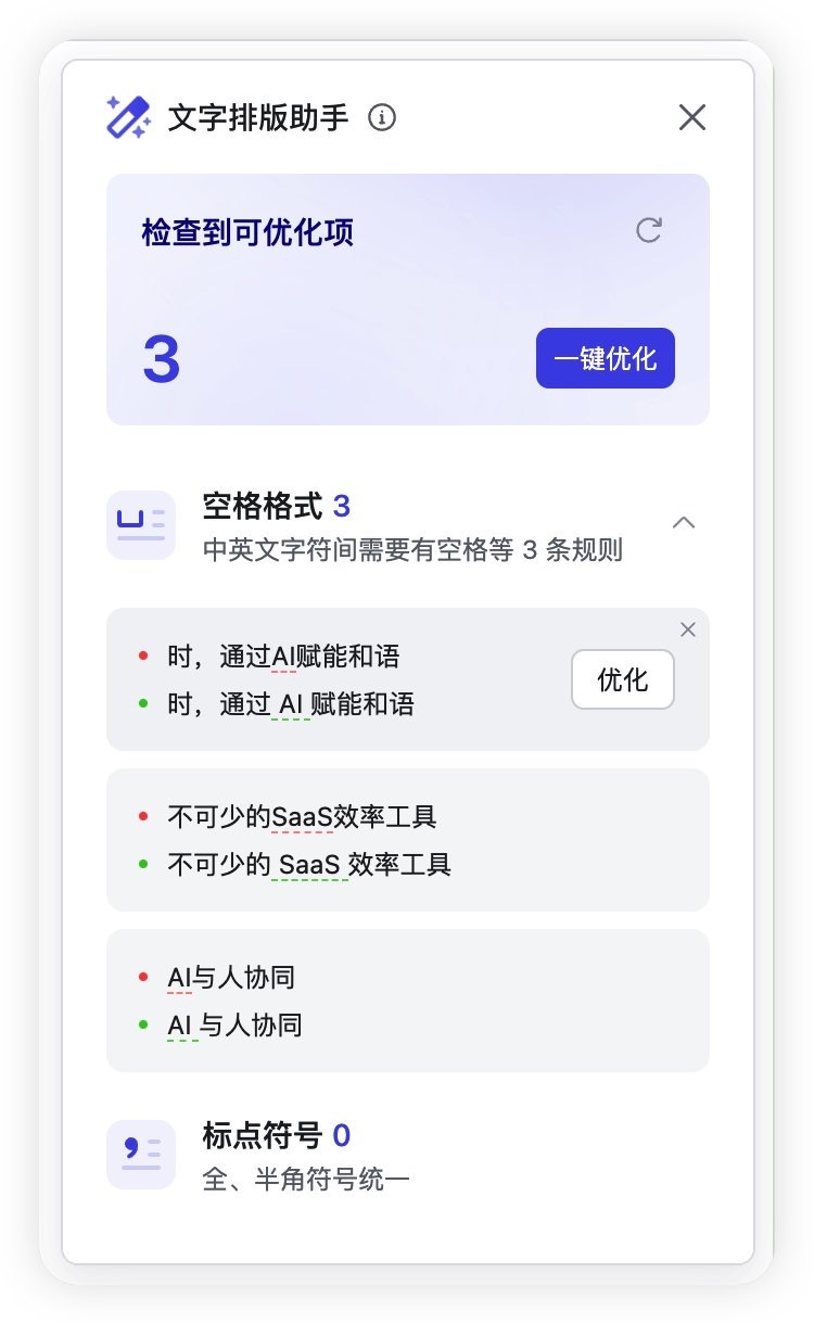 飞书文档支持一键为中英混排内容加空格,并统一全半角符号