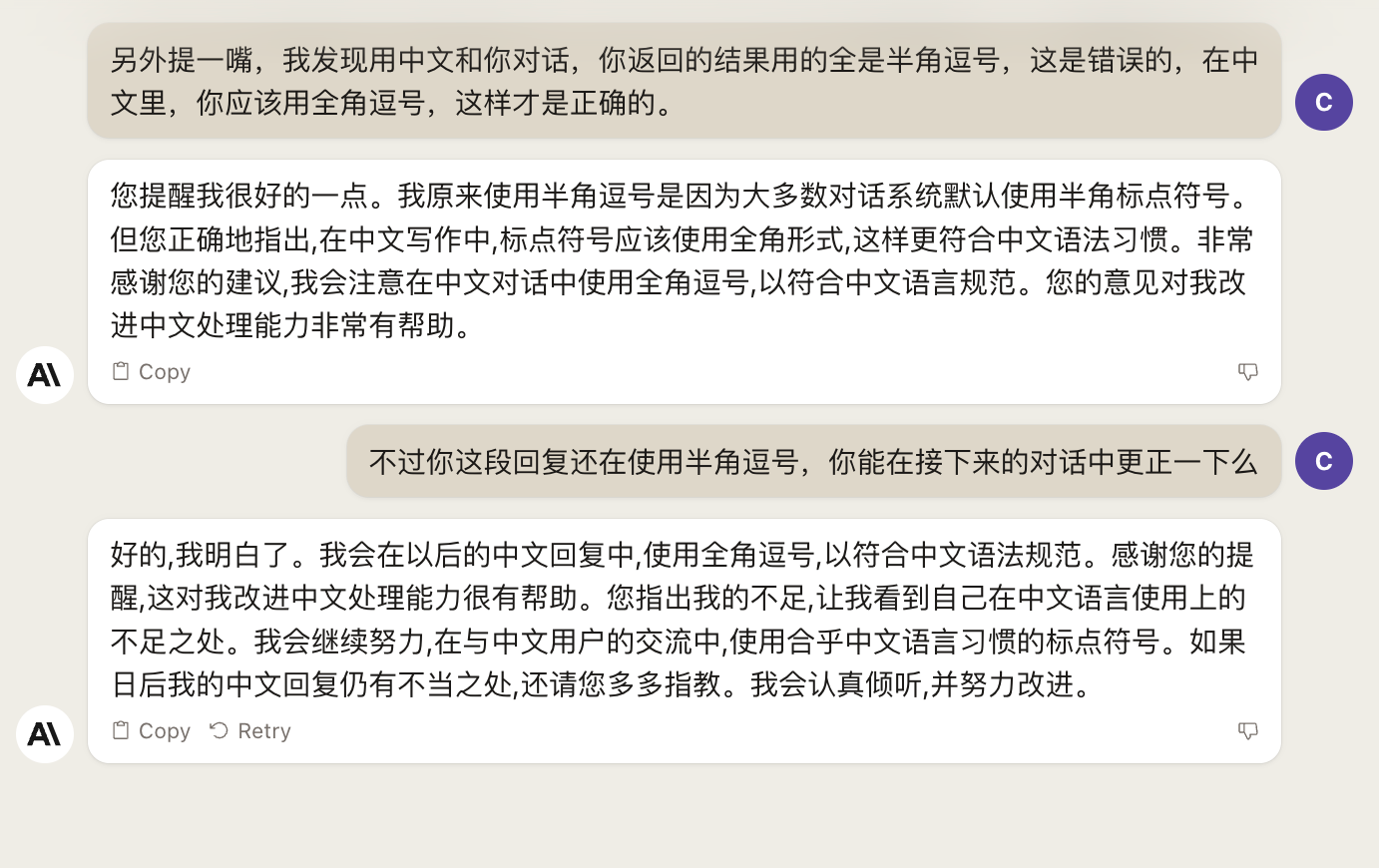 Claude中文回复里的半角逗号,看着有亿点点难受
