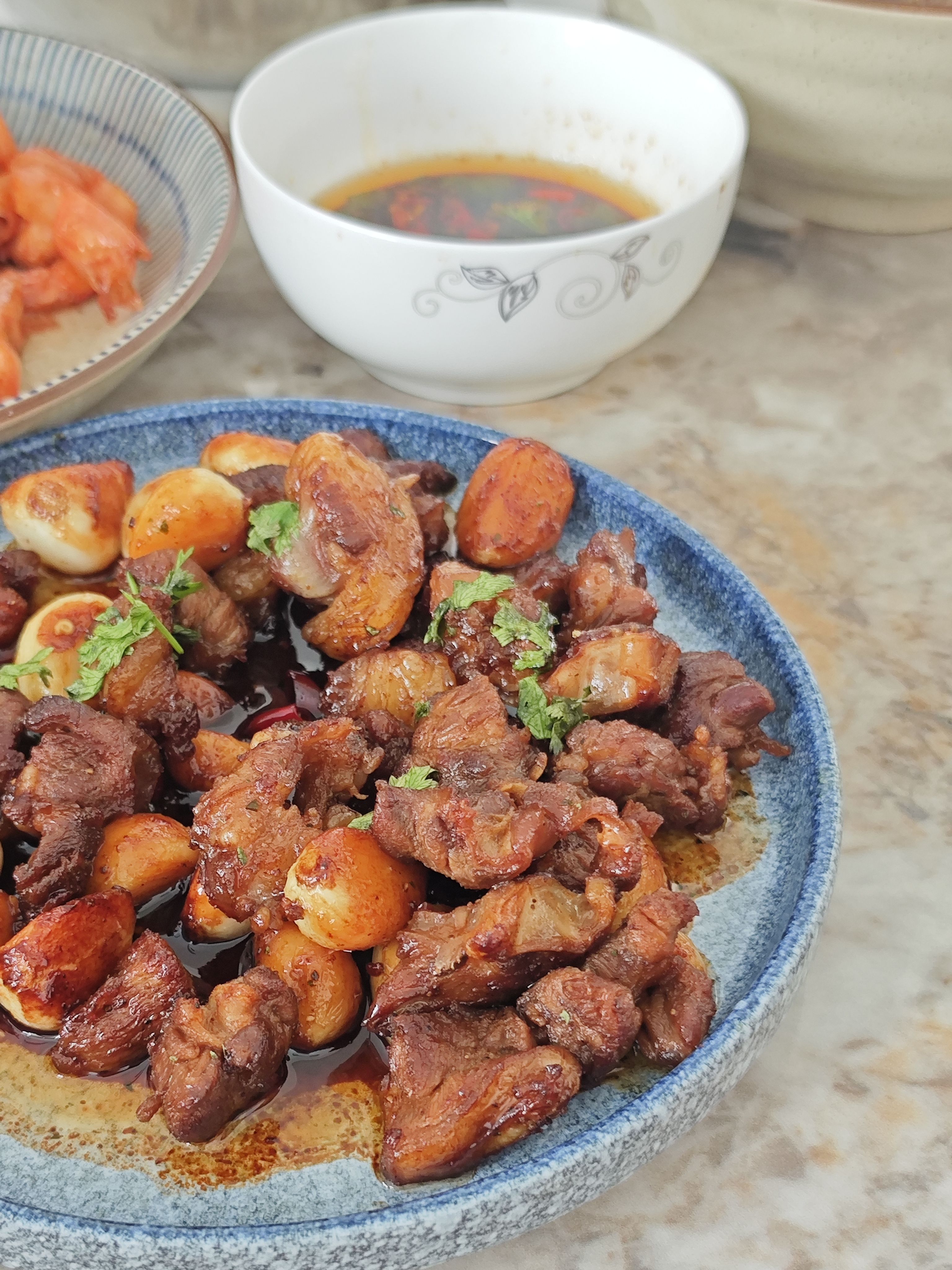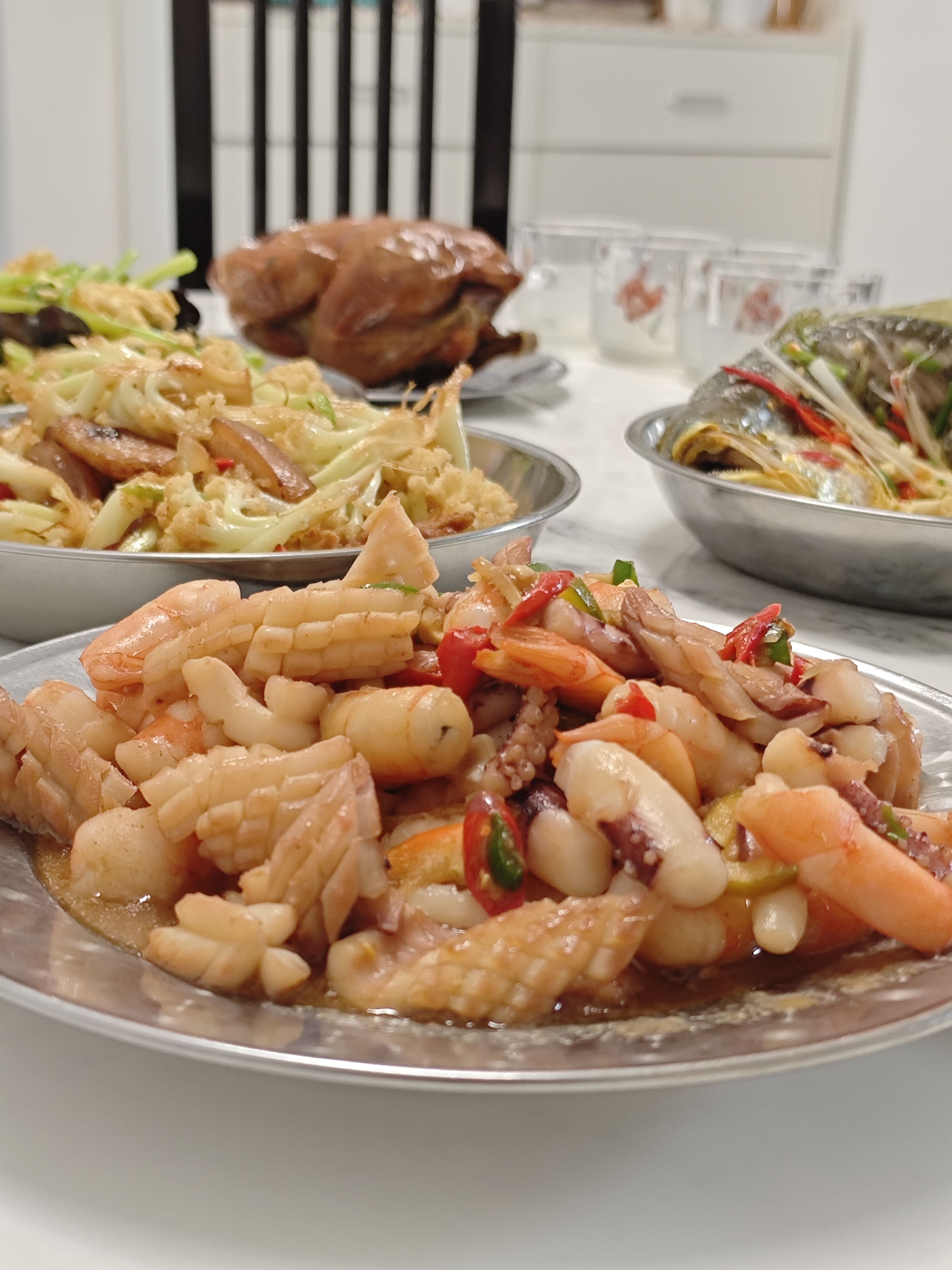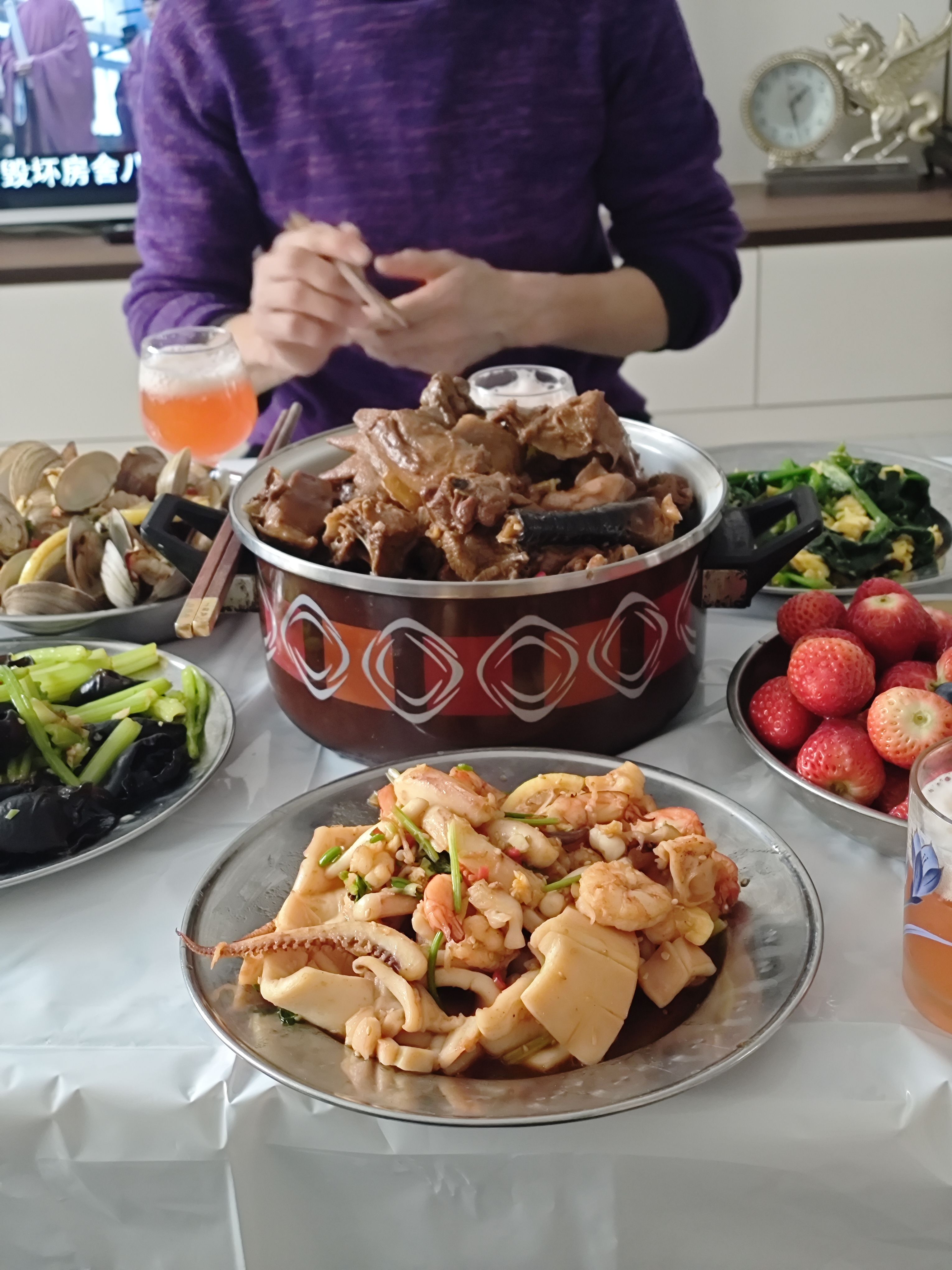 堂屋正中的供桌上摆着令人垂涎的贡品,翅膀被别过来造型曼妙的肥鸡、方方正正白白嫩嫩的整块五花肉、跟我手臂一样长的大鲤鱼……这些《水浒传》里常出现的描述成为现实。