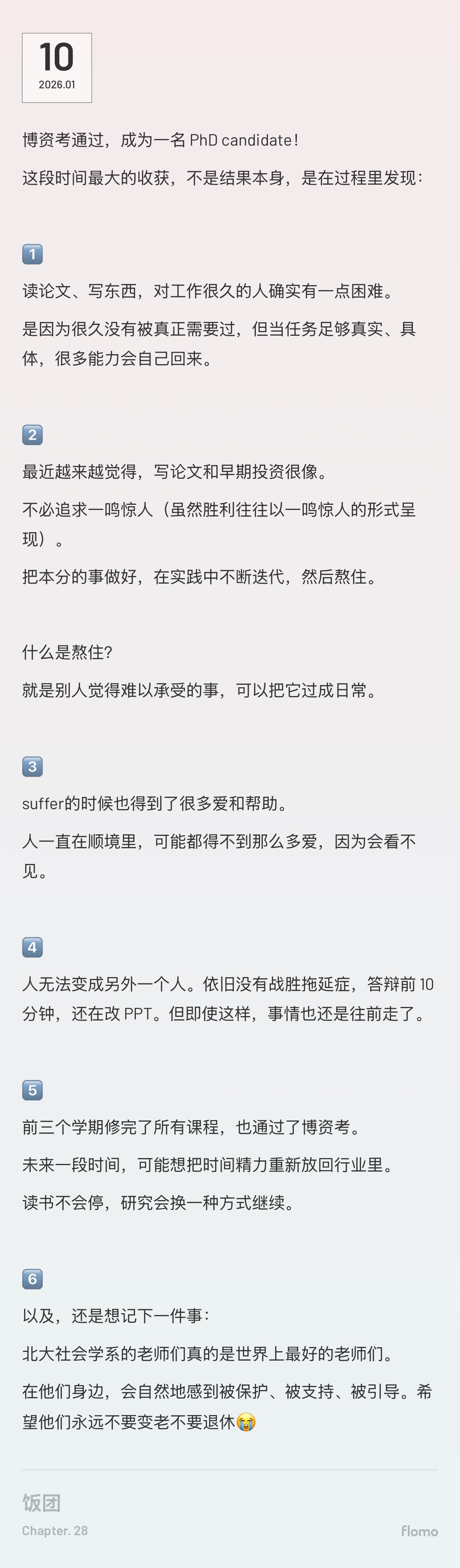 看到了八点和十二点的图书馆(平时8点都没起过),还得到了很多朋友、同门的陪伴、鼓励和帮助(包括消化我的发疯时刻)。
