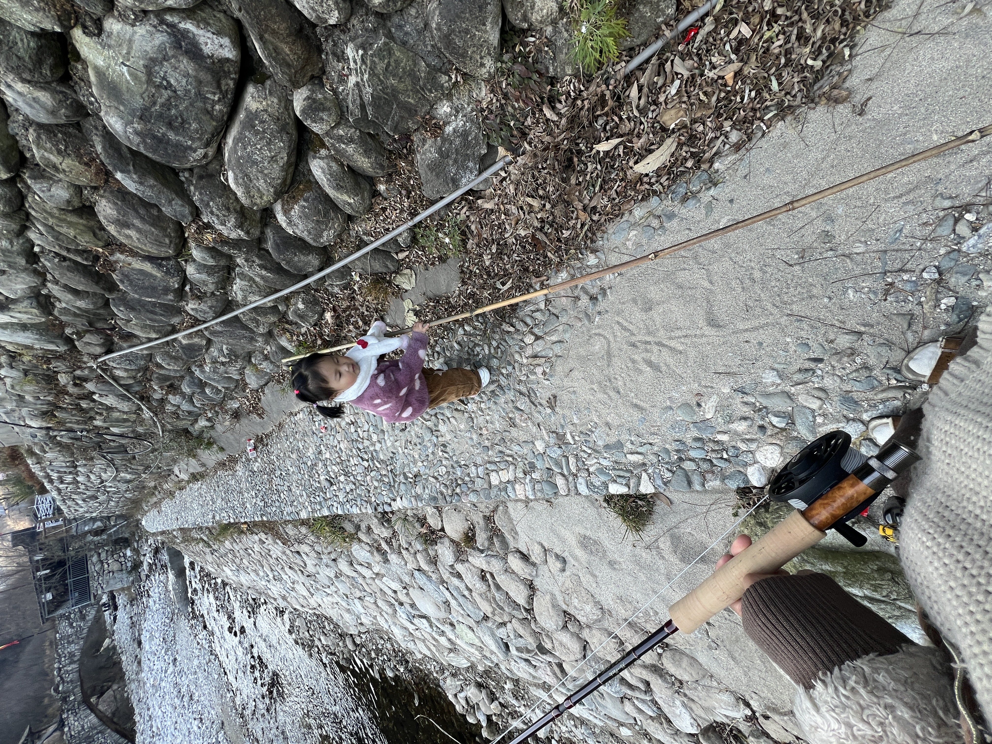 小朋友内心:一起钓鱼,不如直直的棍子好玩😁