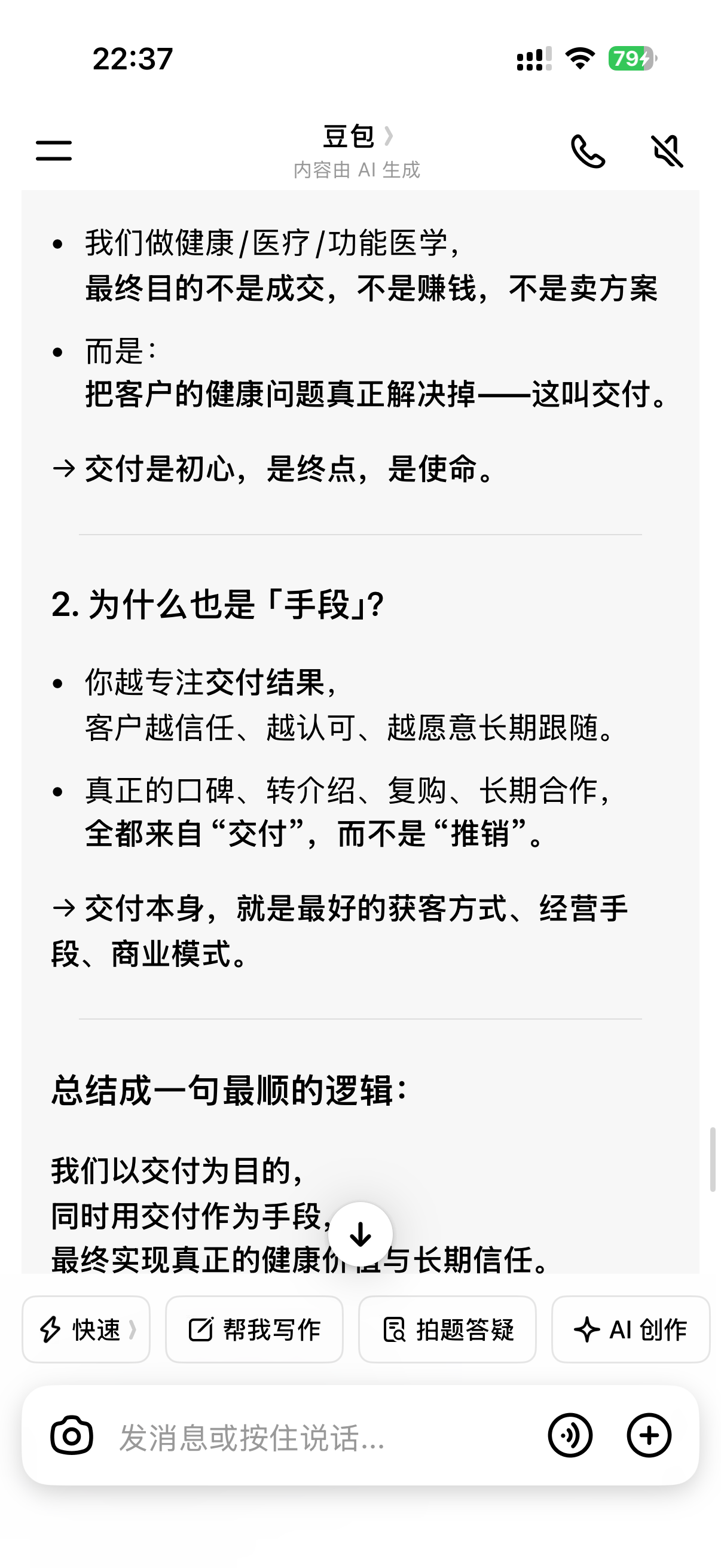 昨天三轮面试终面面试官(医院院长,博士,全科医生,做大健康二十多年)说我适合做市场咨询,本来应聘的是营养师/健康管理师去坐坐冷板凳磨练磨练基本功的,遇到知人善用的领导不容易,说是要给我找个师傅,让我考虑考虑。还问我会不会做ppt,给我看了他做的ppt,看着是马年招商用的,里面用道和术阐述了大健康怎么做,还有介绍了大血净、肠道菌群等大健康行业常见的产品。(随便翻了一下,没想到自己瞬时记忆能力还是挺强的嘛,归因两点,第一内容熟悉,第二emmm好像还是熟悉哈哈哈。)提到格式啥的,我讲比例是自适应的,做ppt极具个人审美且需要演讲者把握演讲节奏。还问给我内容我多久能做出一个ppt出来,我说做的不多,保守说了下借用AI一两小时能给到。(当时脑子闪现的是自己追求完美的性子可能会耗点时间,哎呀真拿自己没办法,太实诚了。)