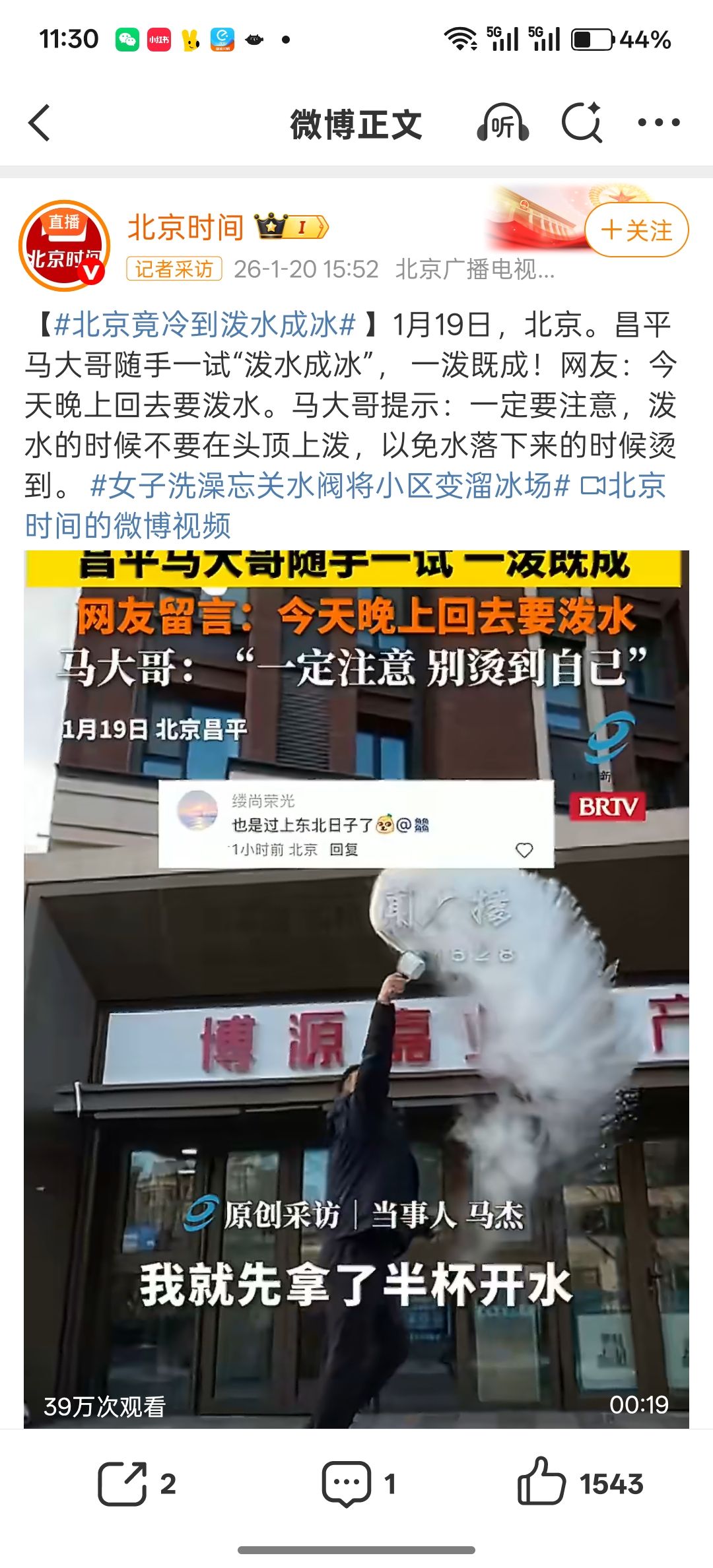自打进入冬天后,我就吐槽过,北京今年冬天比往年都冷,一开始还有人说我太夸张了,这不,北京都冷到上新闻了…再加上今年我们小区(家属院)的供暖公司莫名其妙换了,导致暖气一直不够暖和,晚上我得盖两床被子,穿着卫衣入睡,推了光头后,我还得带着帽子入睡,不然半夜会冻的翻来覆去,或者早上一定会头疼…投诉了一个月还是这逼样…