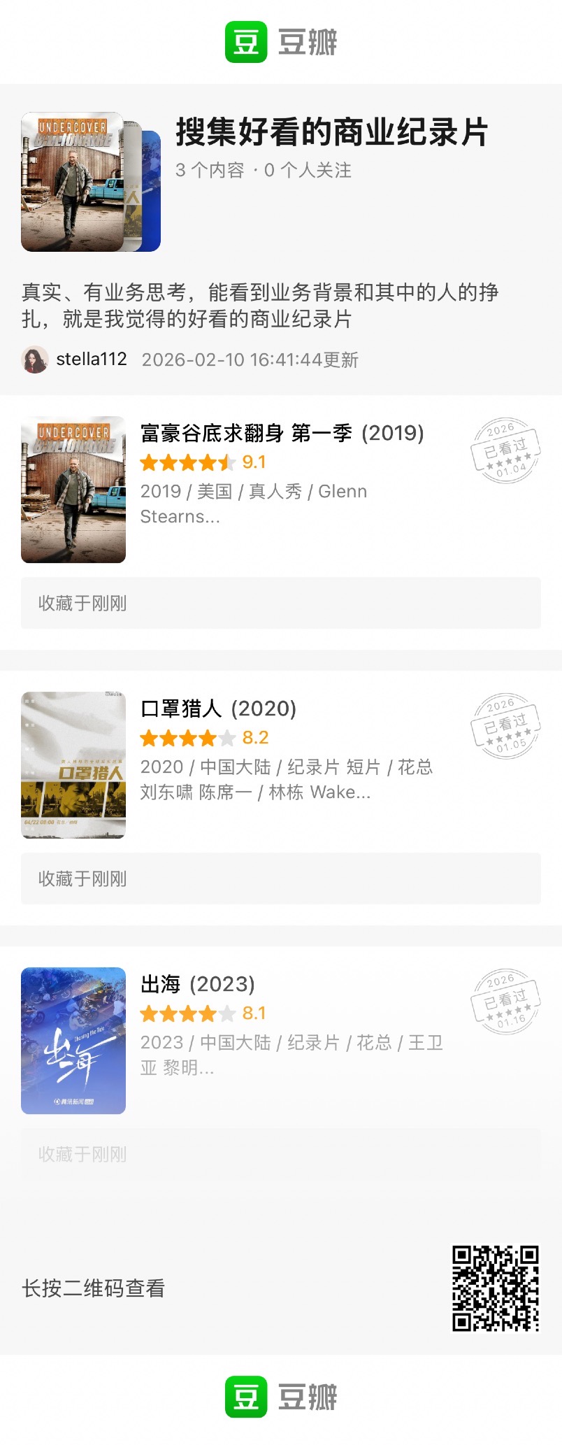 建了一个豆列 搜集好看的商业纪录片