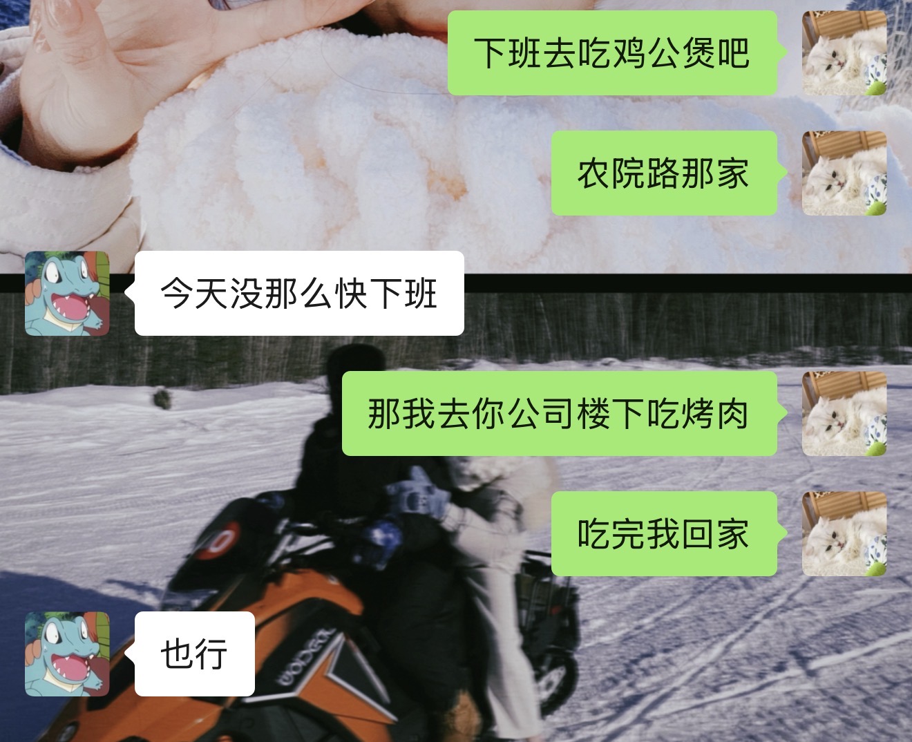 我:下雨,没地方玩的,玩也是出去跟同学喝两杯了