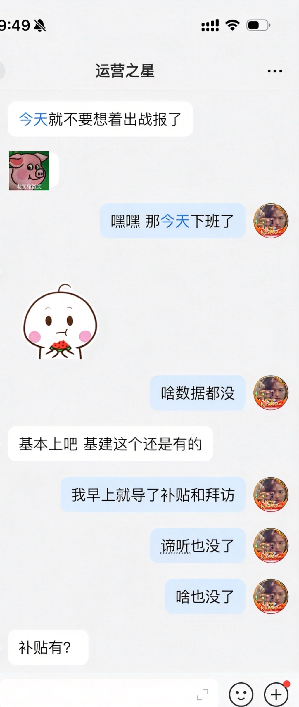 今天一下班应该是还没下班,
