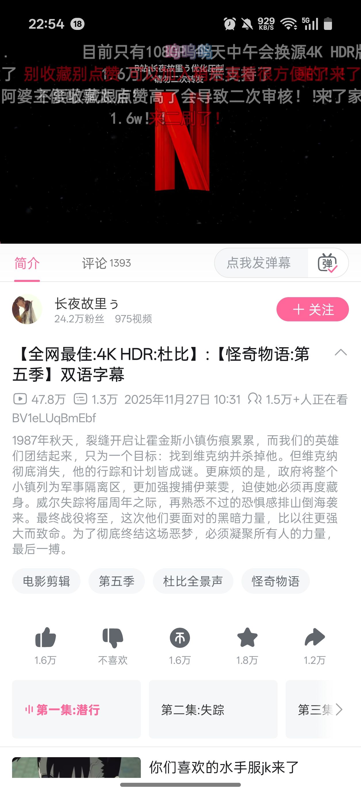 给大家推荐一个追剧神器:哔哩哔哩,能看怪奇物语,4K还有HDR,投屏电视还有弹幕,1.5万人同时在线,这你受得了吗?