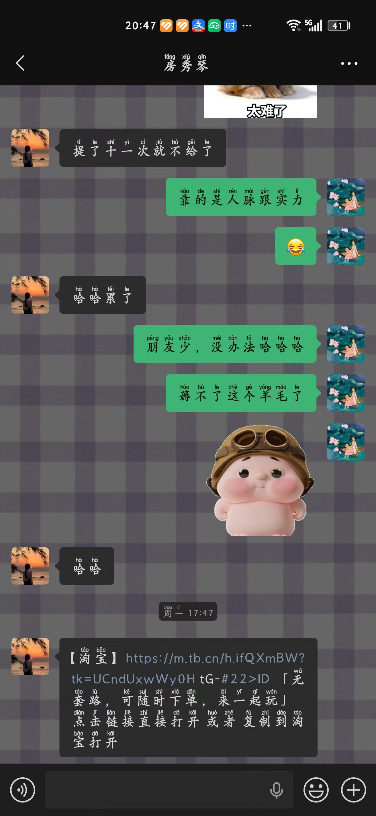 之前玲希一个人去玩,我们不认识,却在同一个景点遇到,没有提前说好,有一次我知道你很想和我做朋友,还带着花花来找我,在时尚天河请我吃了饭,当时我把饭钱转你,不是不想跟你做朋友。我只是不想占朋友的便宜,因为我之前都把我的偏爱都给了我的好朋友。