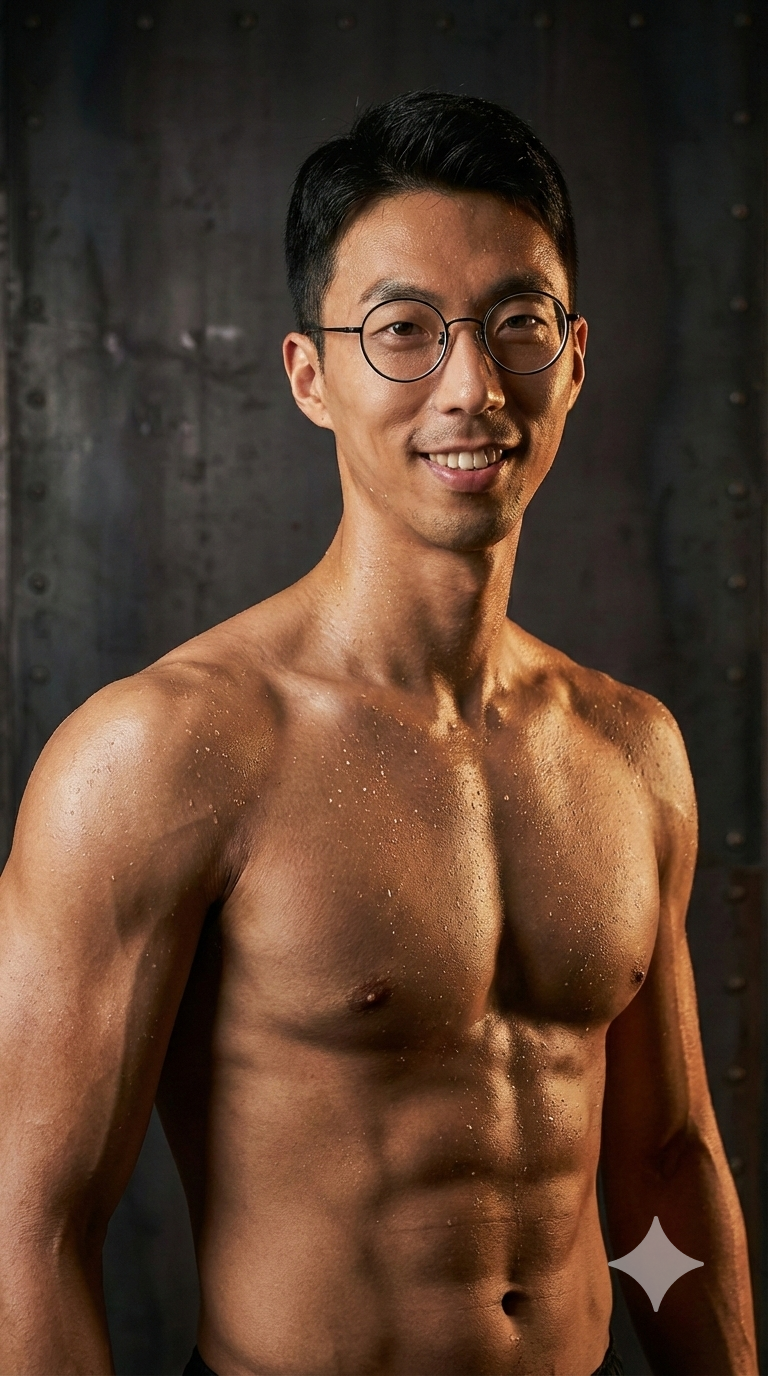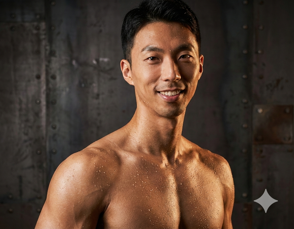 The person should have naked upper half body with clear muscle mass and line on the shoulder, upper chest and neck. The body fat should be athletic level but not too dry. On the skin there should be small but dense sweat shown to increase the sportive nature of the person.