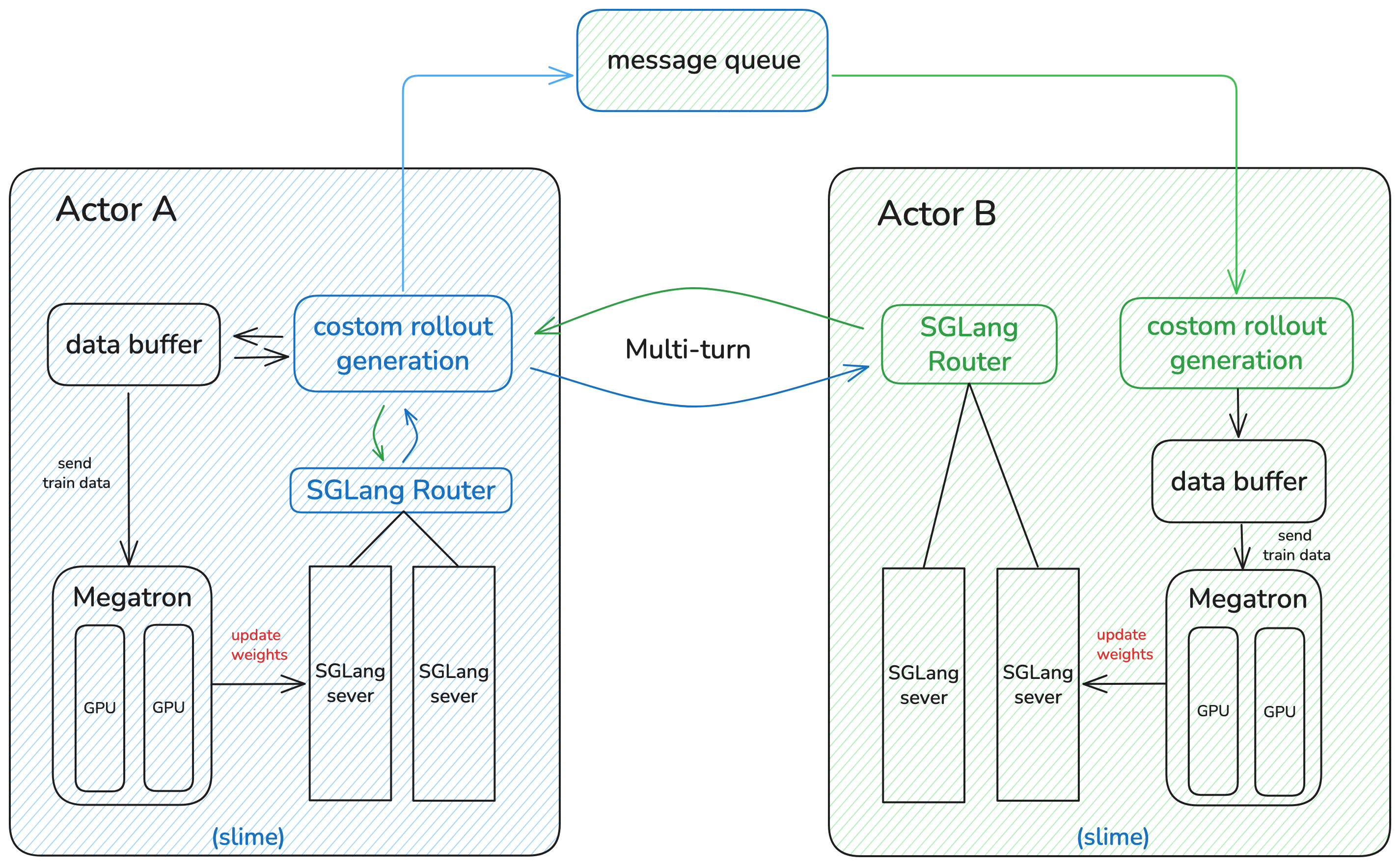 我们团队开源了 Multi-Agent 强化学习的框架 MrlX,它能够让你同时训练多个 Agent 模型。