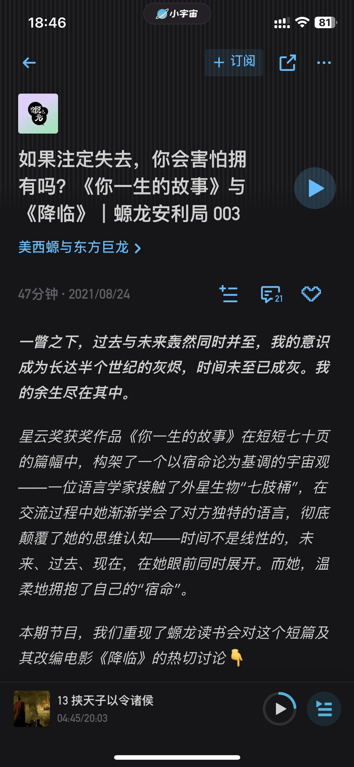 话题切入点电影《降临》,第一次看的时候,难以理解电影的核心思想,在听了这期播客以后,才静下心来重新回顾了一遍。