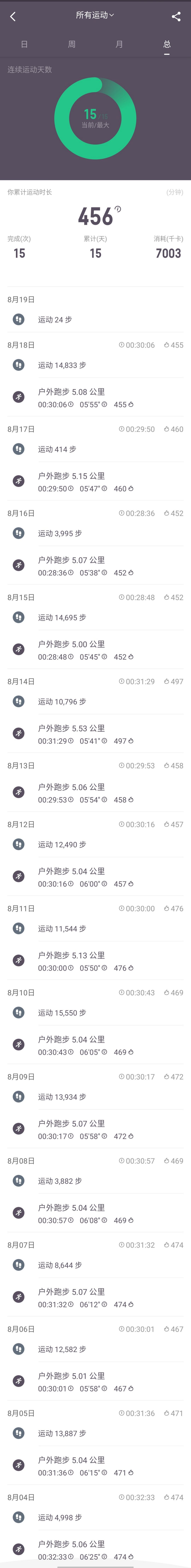 连续15的夜跑,已经成了习惯。🙂