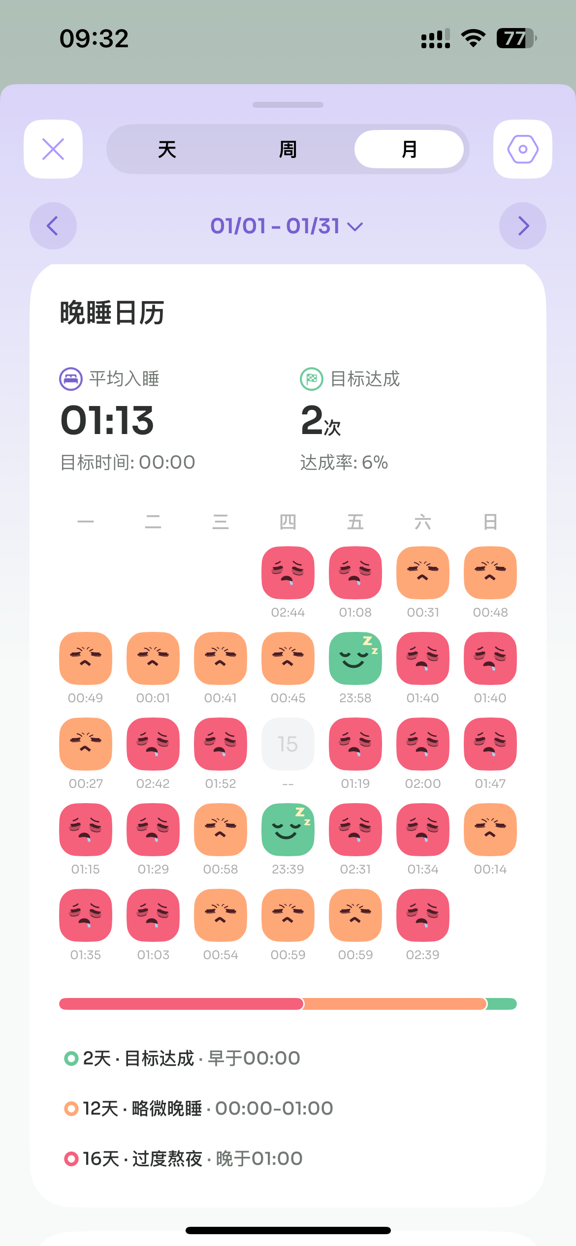 这个错觉和睡眠月视图放在一起比较有点好笑我知道。但这个错觉给到了一个很好的提示,就是当你以为“现在才零点,没关系还能再看会剧再去刷牙”的时候,你基本上就是要00:30后才睡觉了。