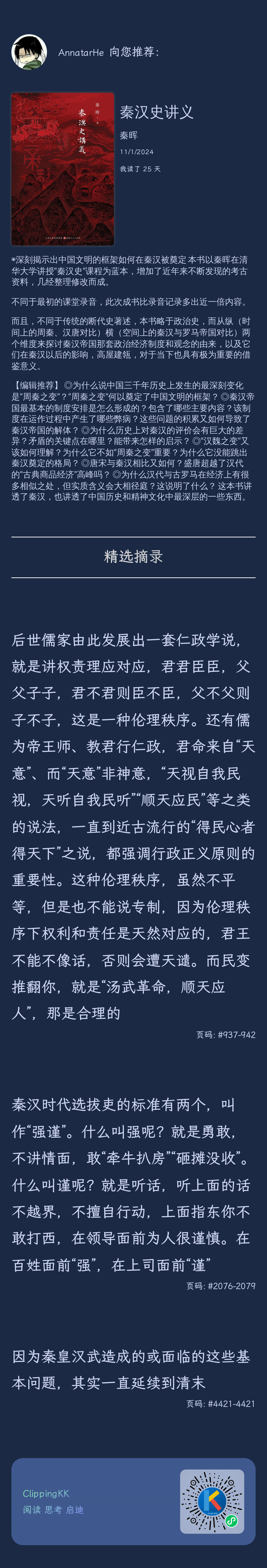 最近在看这本《秦汉史讲义》,一开始没期望的,这书名一看就是个特无聊的老登写的,就那点儿秦汉无聊的东西。