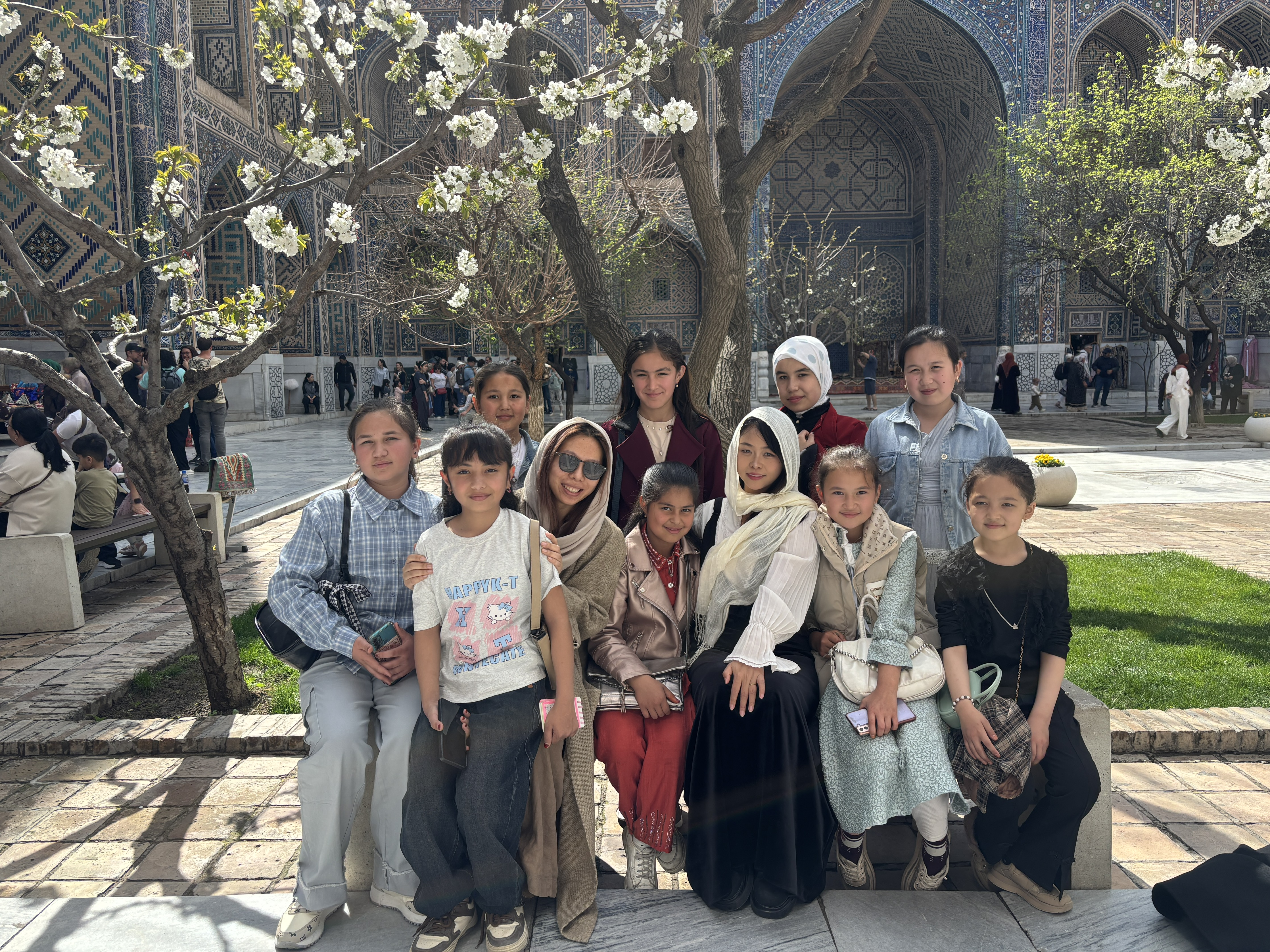 在凌晨乘着绿皮火车抵达萨马尔罕时,会有人主动换下铺给我,说道“他们一向保护女生”,也会有人主动接过我们沉重的行李箱,直到几十级阶梯后再交还我们。