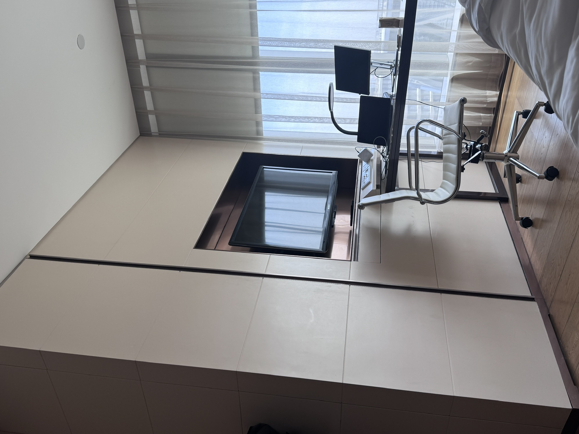 这次来北京住东隅酒店,第一次见水吧藏在柜子里(图2电视机旁边那个把手),我本来都在想一个五星酒店怎么烧水壶都没有,搜了评测才知道藏在这里