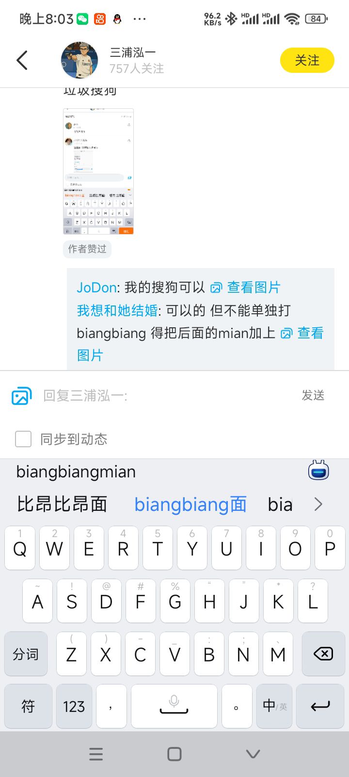 三浦泓一: 你们能打出来“𰻞𰻞面”吗?