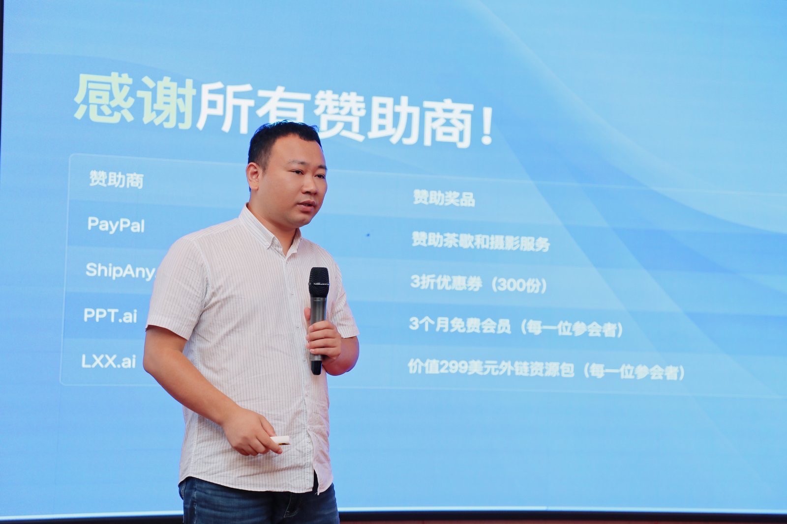 哥飞: 最最要感谢的是两大赞助商,Same.new 和 PayPal 各赞助了 5000 美金用于给参赛获奖作品发奖金。 今天现场很多人的参赛作品都是用 Same.new 做出来的,有了 AI 的协助,程序员和非程序员都能开发产品了。 如果你要出海赚美金,不一定需要注册海外公司,直接用国内公司注册 PayPal 也能向全球收款。PayPal 支持两百多种货币结算,而且在海外赚的钱,直接可以用 PayPal 国内公司贝宝结算人民币到国内银行里,不用受 50000 美金所限,优点多多。 此处应该放图,结果今天居然忘记跟两大赞助商单独合影了。 大家有出海支付接入需求,找 PayPal 的@二两牛肉面 ,大家想要学习用 Same.new 做产品的找他们创始人@fiveseveny 。