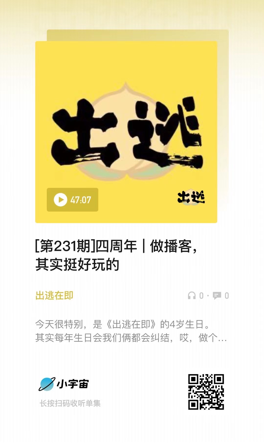 时间真的快,三周年好像刚过完没几个月,四周年就到了。每次周年庆内容都会纠结,正巧身边很多朋友和粉丝都说想做播客,那我们就把四年的感悟做一期分享给大家,希望能帮到你。