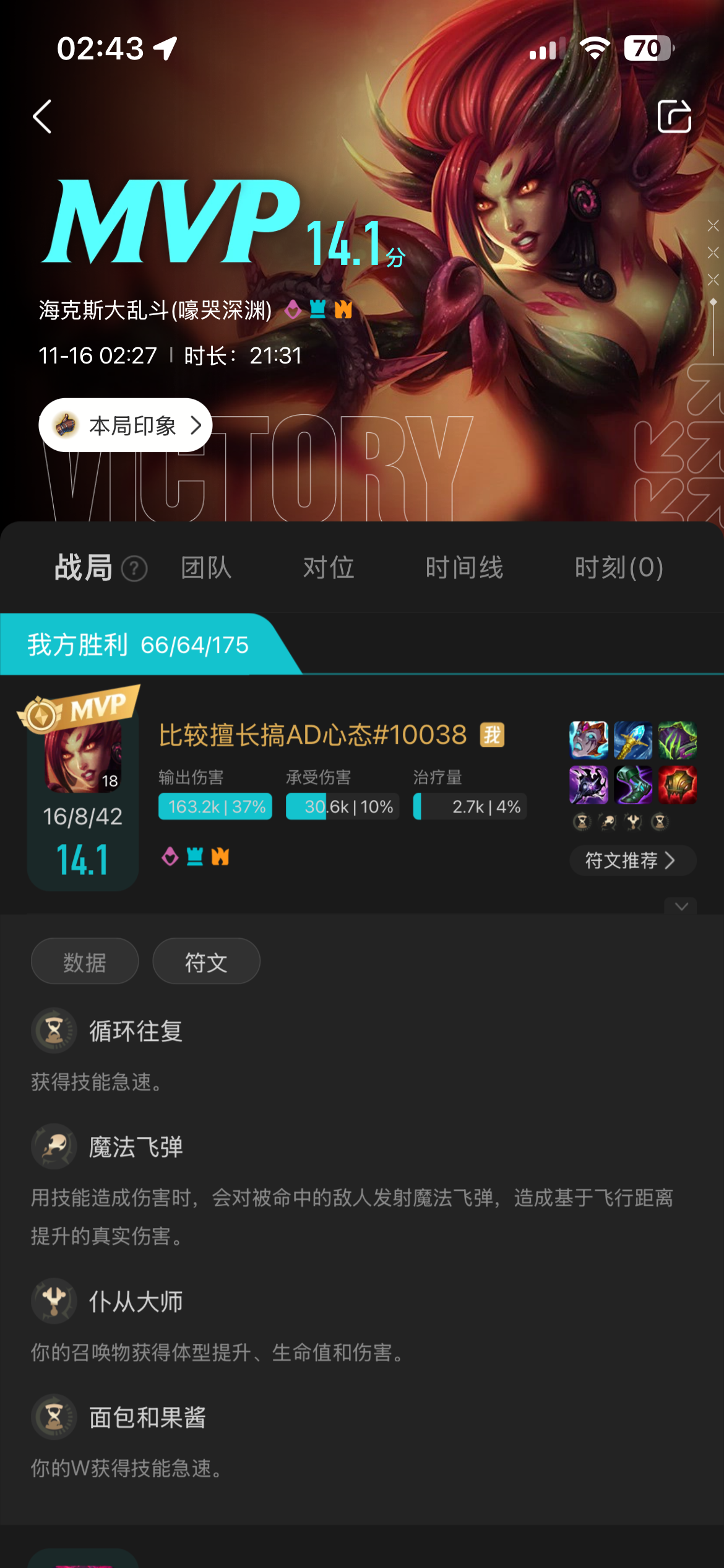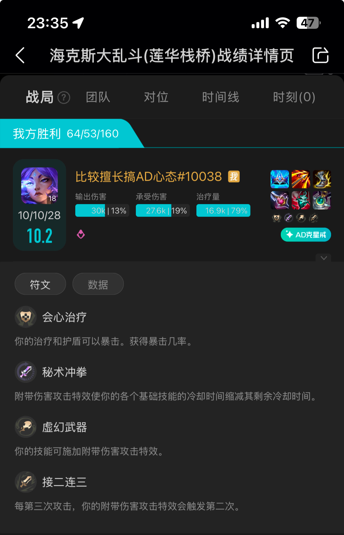 婕拉打了16W伤害,出装如图。