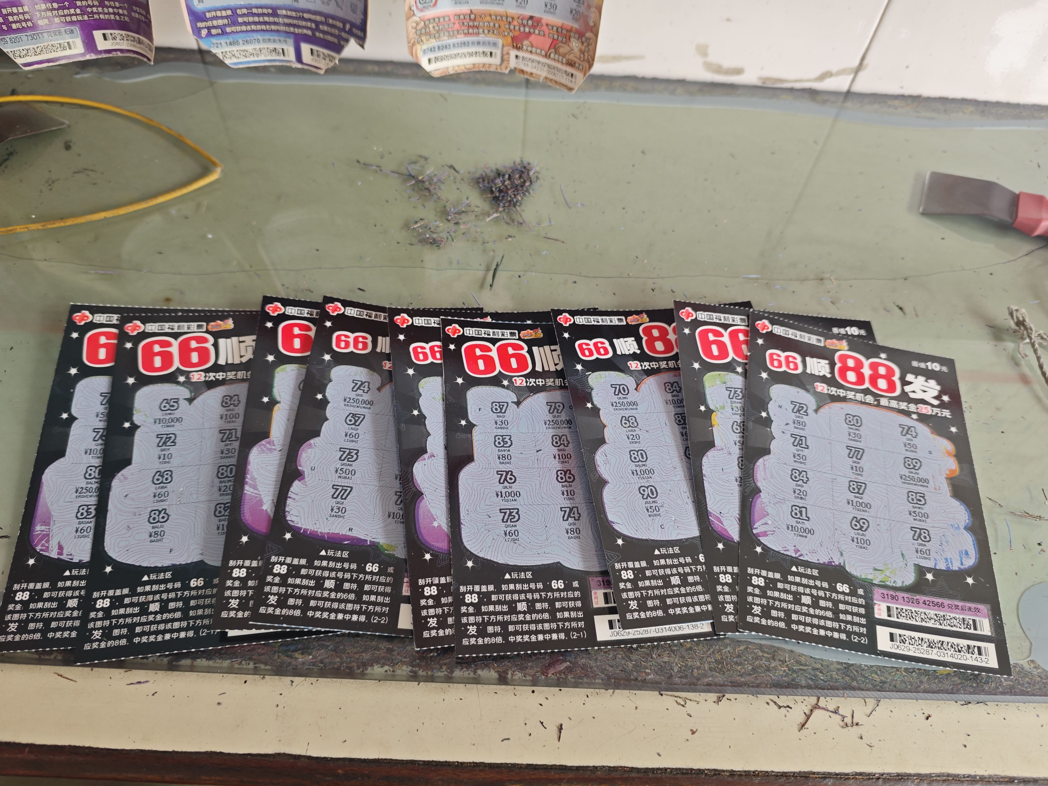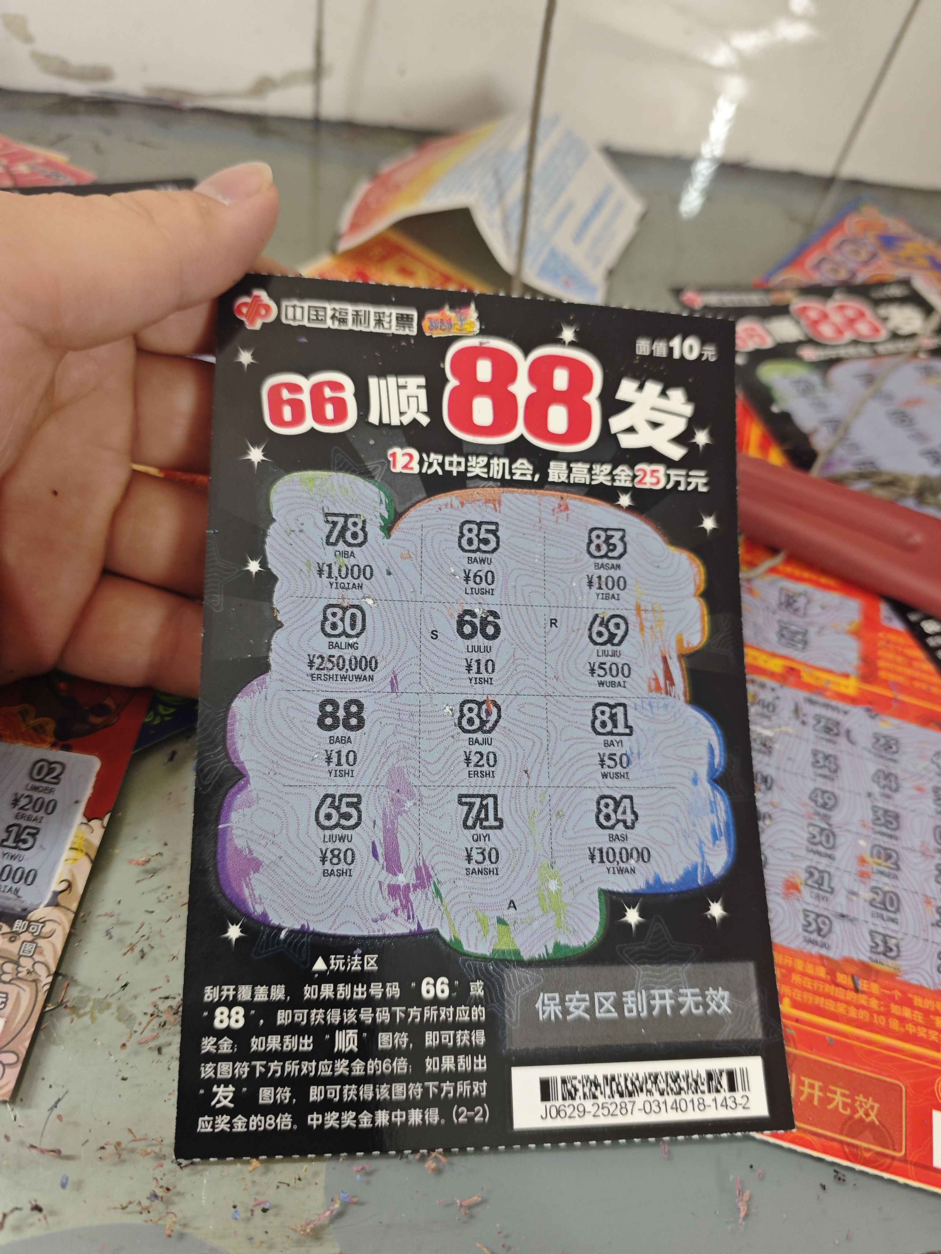亲测过一口气刮了20张面额10元的刮刮乐,实际上中奖4张,中奖率20%。如果直接买一本新的刮刮乐,1000元最多回本40%→65%。中奖大数据卡的很死,游戏规则早就被设计好