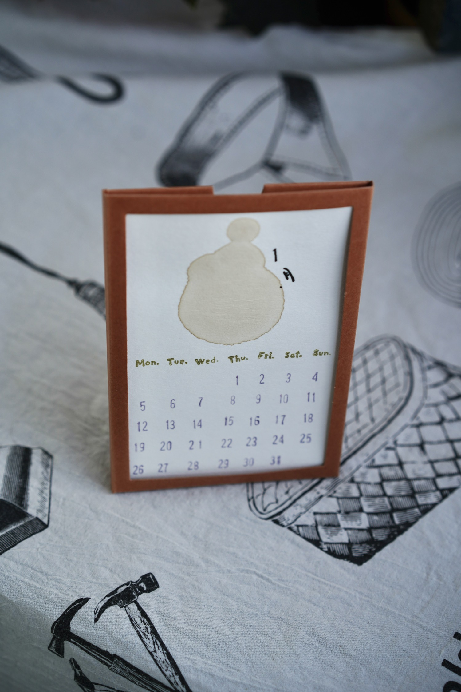 用最近每天的咖啡渍给自己印了一份日历。