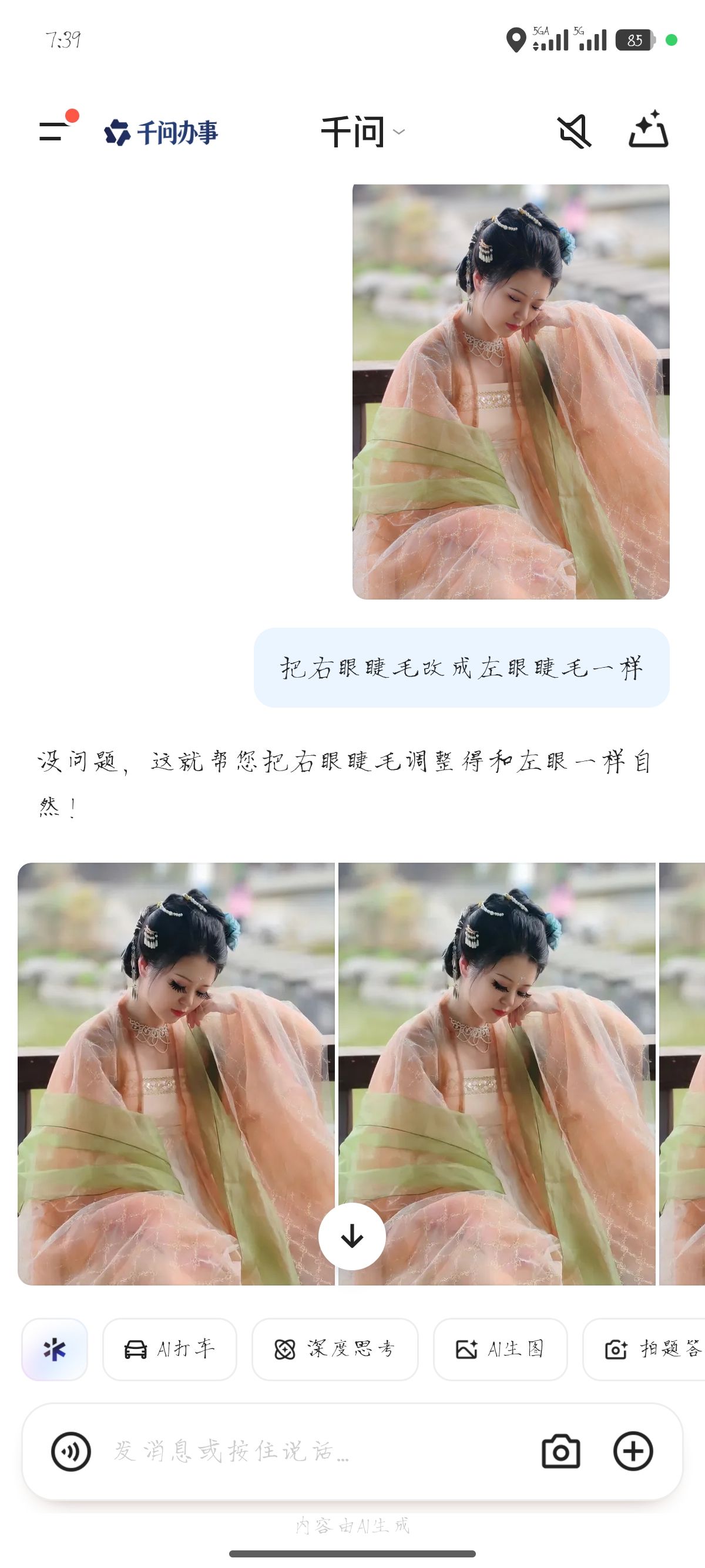 假睫毛没贴对称,懒得修交给ai。