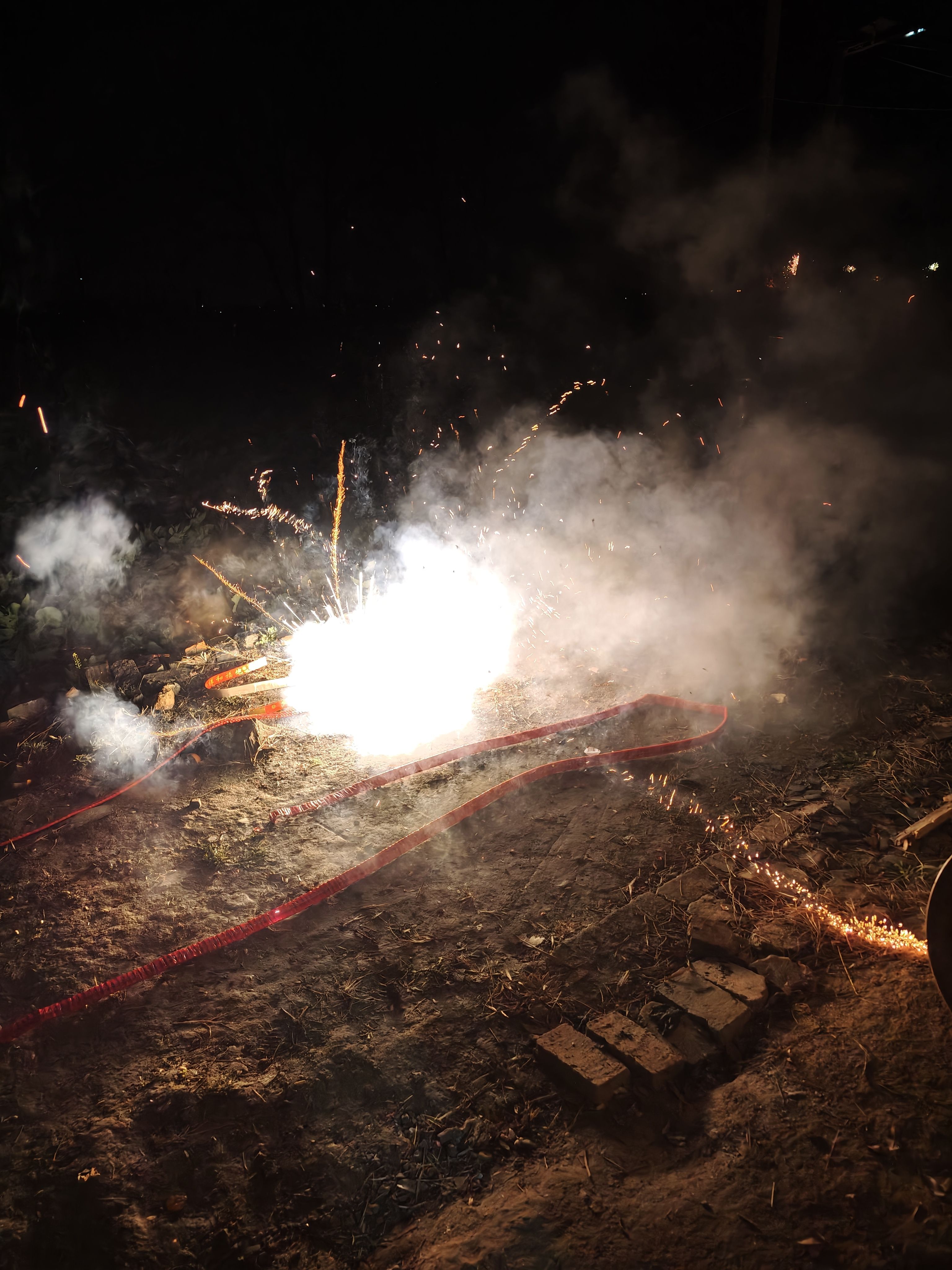 岁次丙午,除夕良宵。随家父于老宅门前点响红串,一为驱邪,二为祈安。烟火向星辰,所愿皆成真。