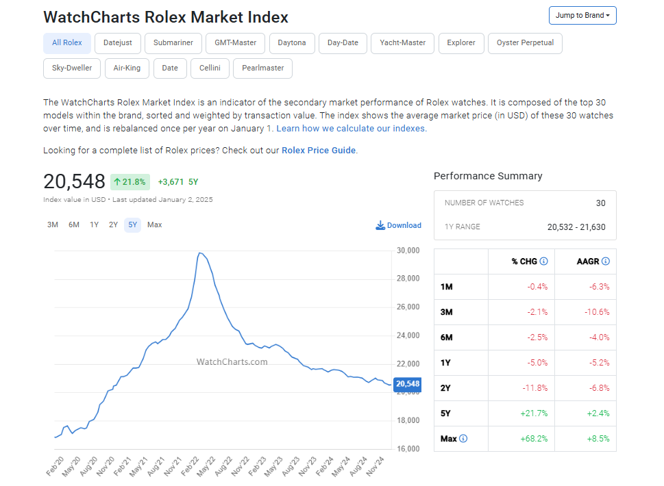 近些年来,奢侈品保值论不断崩塌,最有代表性的就是瑞士名表,二手价格不断下探。为了应对二手价格不断下探,劳力士给出的解决方案是调高新品价格,减少供给~然而,并没有什么卵用,时代变了
