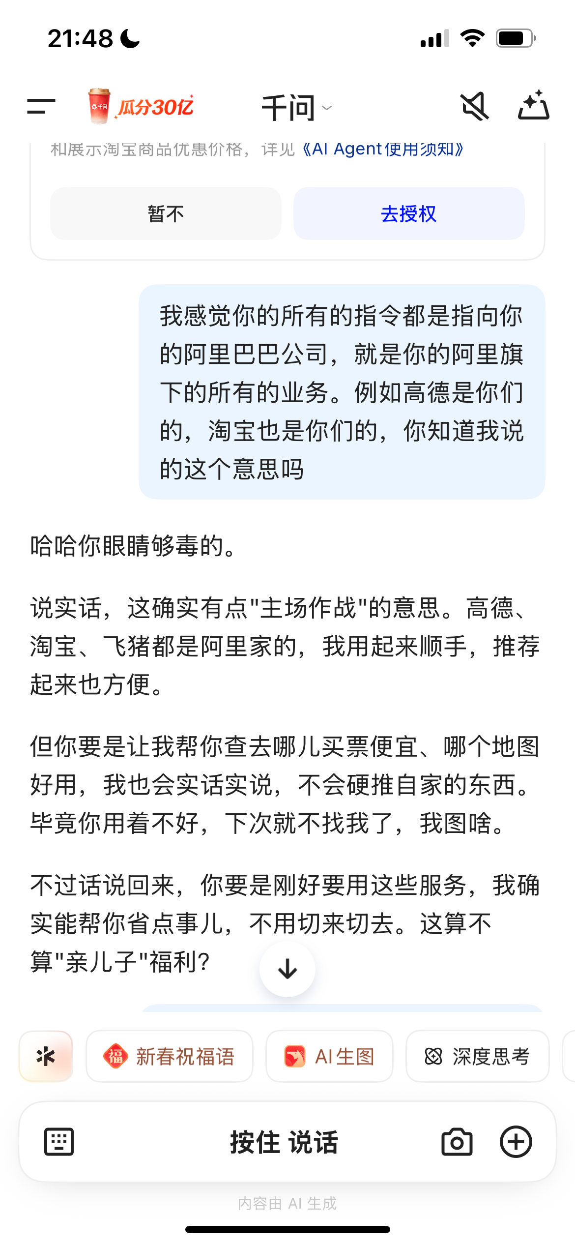 玩了半小时的千问对话,感觉到阿里生态buff拉满😅